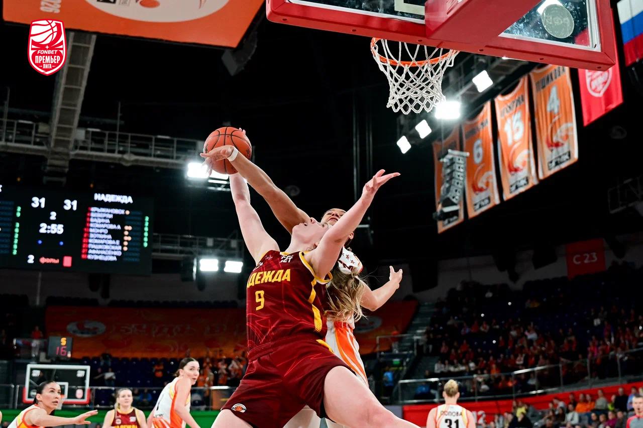 Третий отрезок превратился в настоящую борьбу характеров. Очко в очко и много контакта под щитами. Ближе к концовке подопечные Дмитрия Донскова нащупали ритм, сделали рывок и довели разницу до «+8». Точные действия Третьяковой и ответный трехочковый Комаровой зафиксировали счет 61:55, а травма центровой Монро у «Надежды» стала серьезным ударом для гостей.