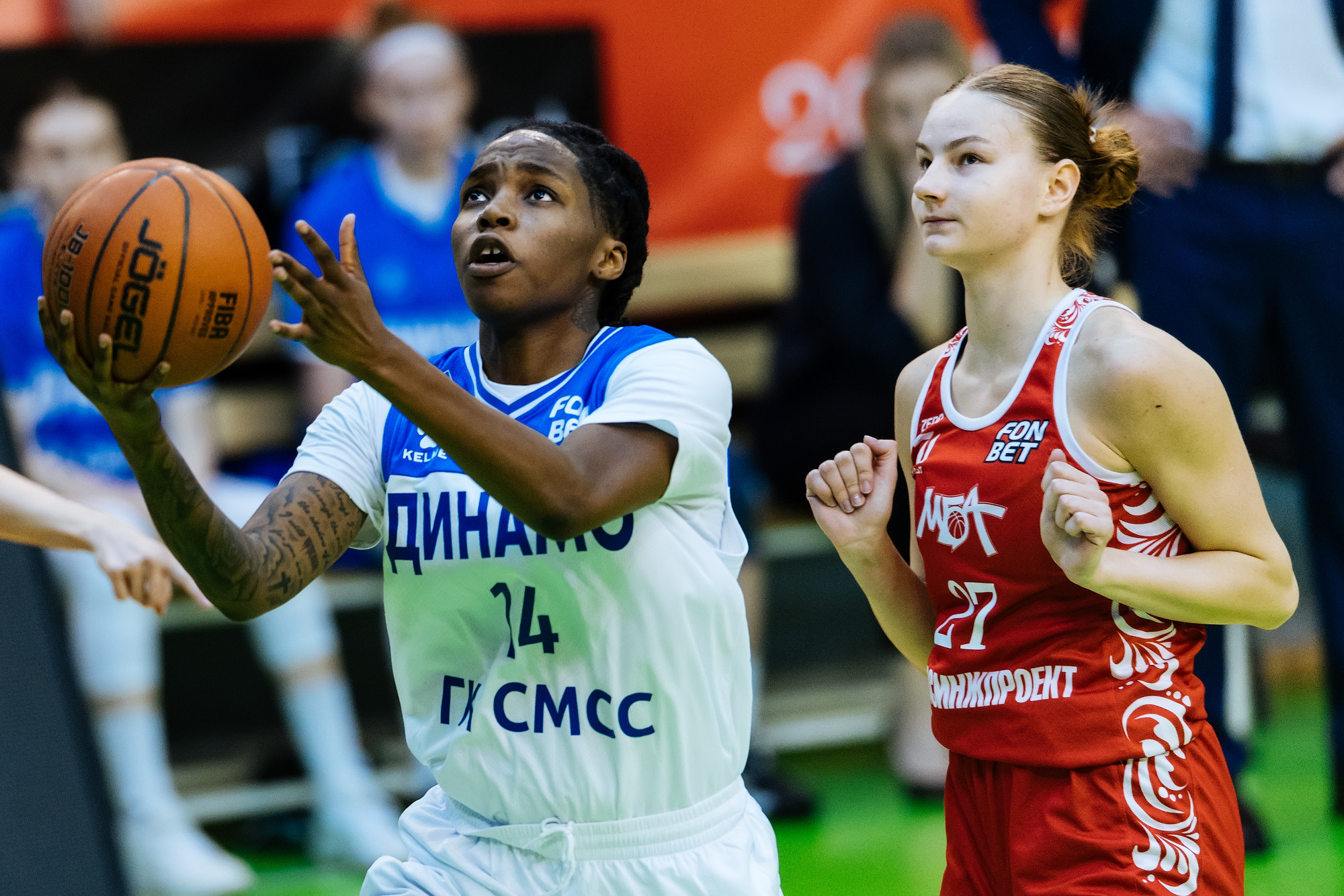 Во второй четверти игра выровнялась. В первую очередь, благодаря появлению на площадке Шайны Пеллингтон. Но гости и не думали останавливаться. Трехочковые Вероники Логиновой и Евгении Фролкиной сыграли свою роль. И четверть вновь за МБА-МГУСиТ - 36:28 перед большим перерывом.