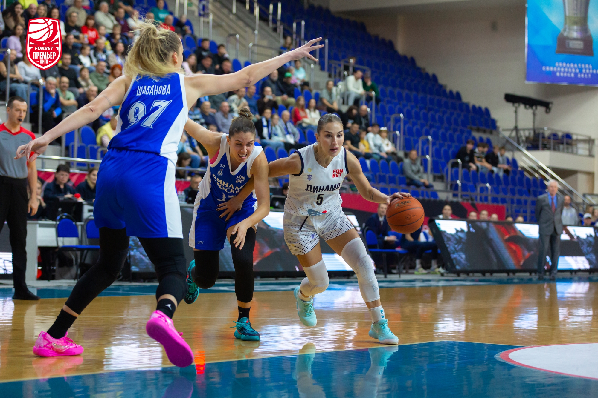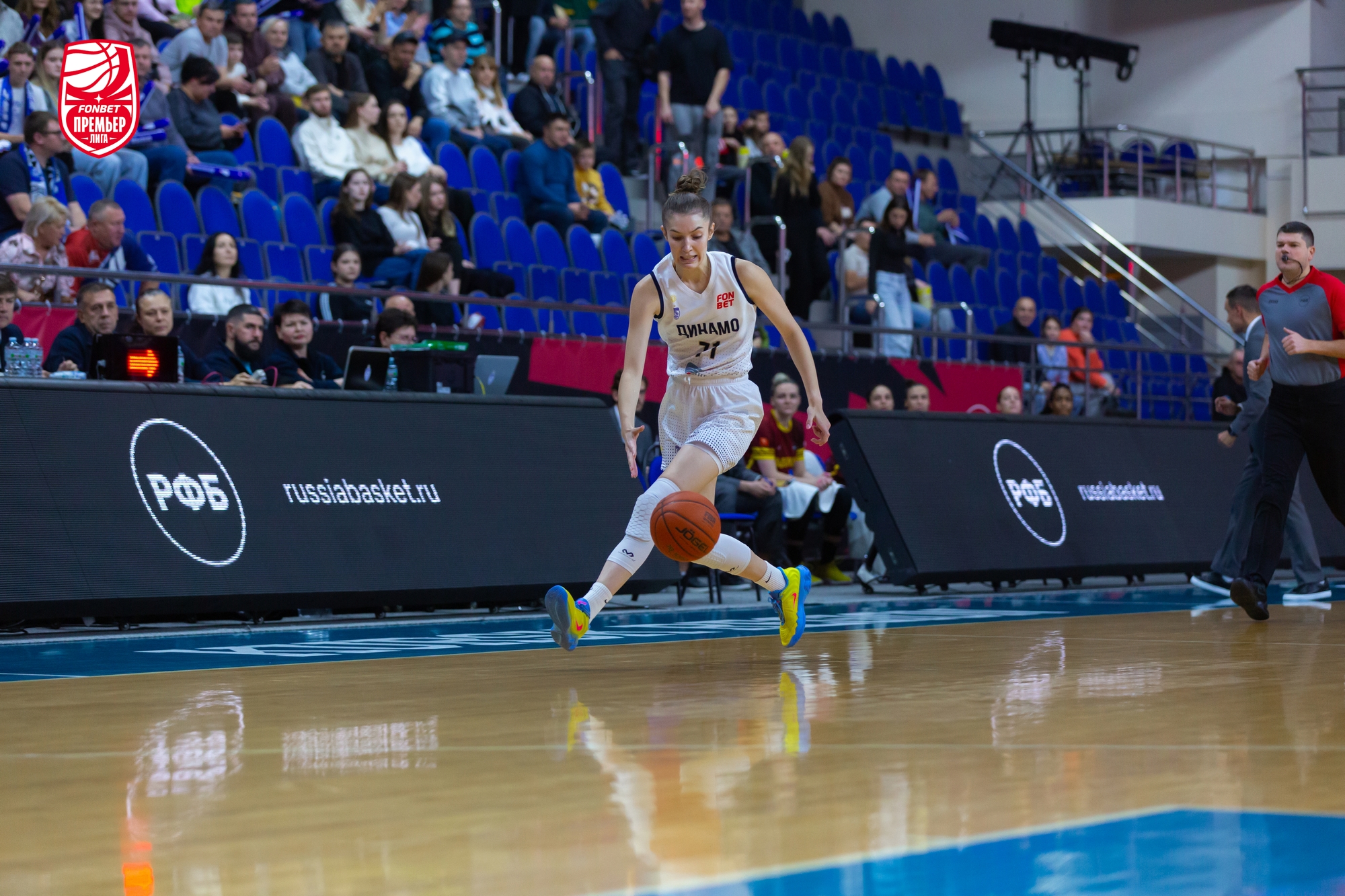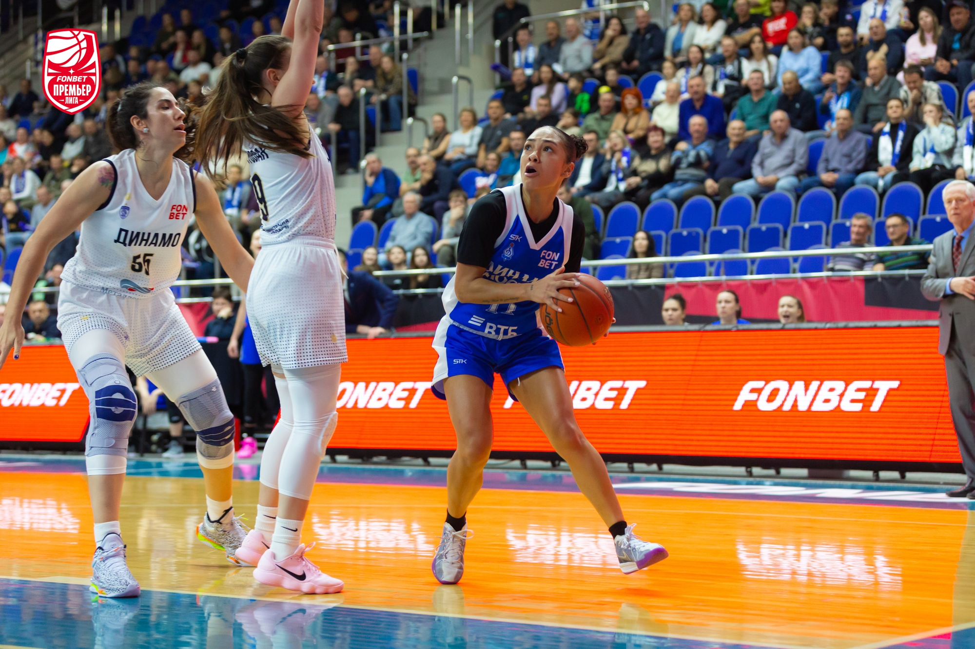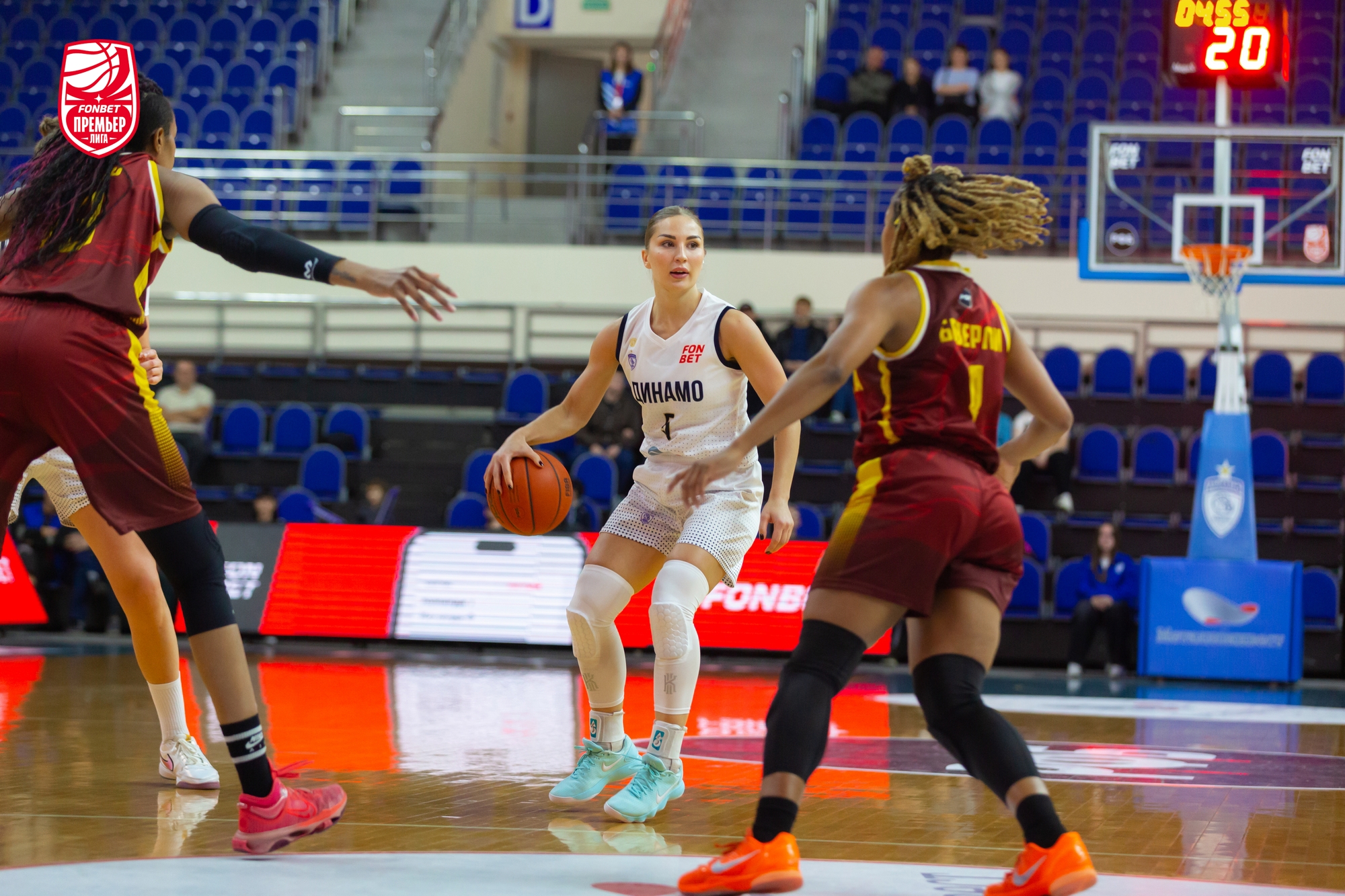 В игру лучше вошли гости: Елизавета Шабанова набрала 4 очка подряд, «трешкой» ее поддержала Александра Штанько. Столичное «Динамо» здорово использовало скорость и активно задействовало в атаке «больших». Хозяйки отвечали точными средними бросками. Из-за дуги попала Кияра Линскенс. Этого не хватало. Команда Владимира Штама уверенно держала нити игры в руках и даже, был момент, вела «+7». До первого перерыва курянкам рывком 5:0, уместившим трехочковый Дарьи Репниковой, удалось минимизировать отставание — 21:23.