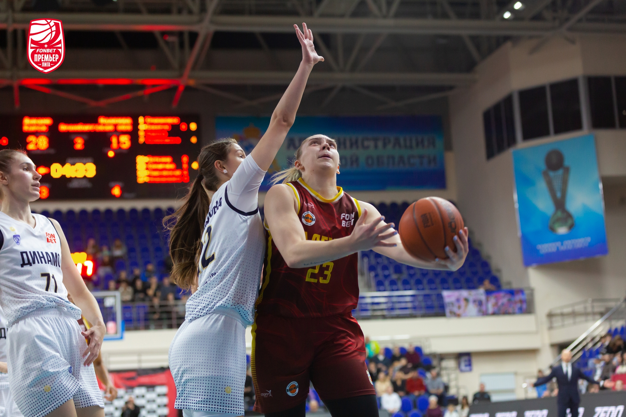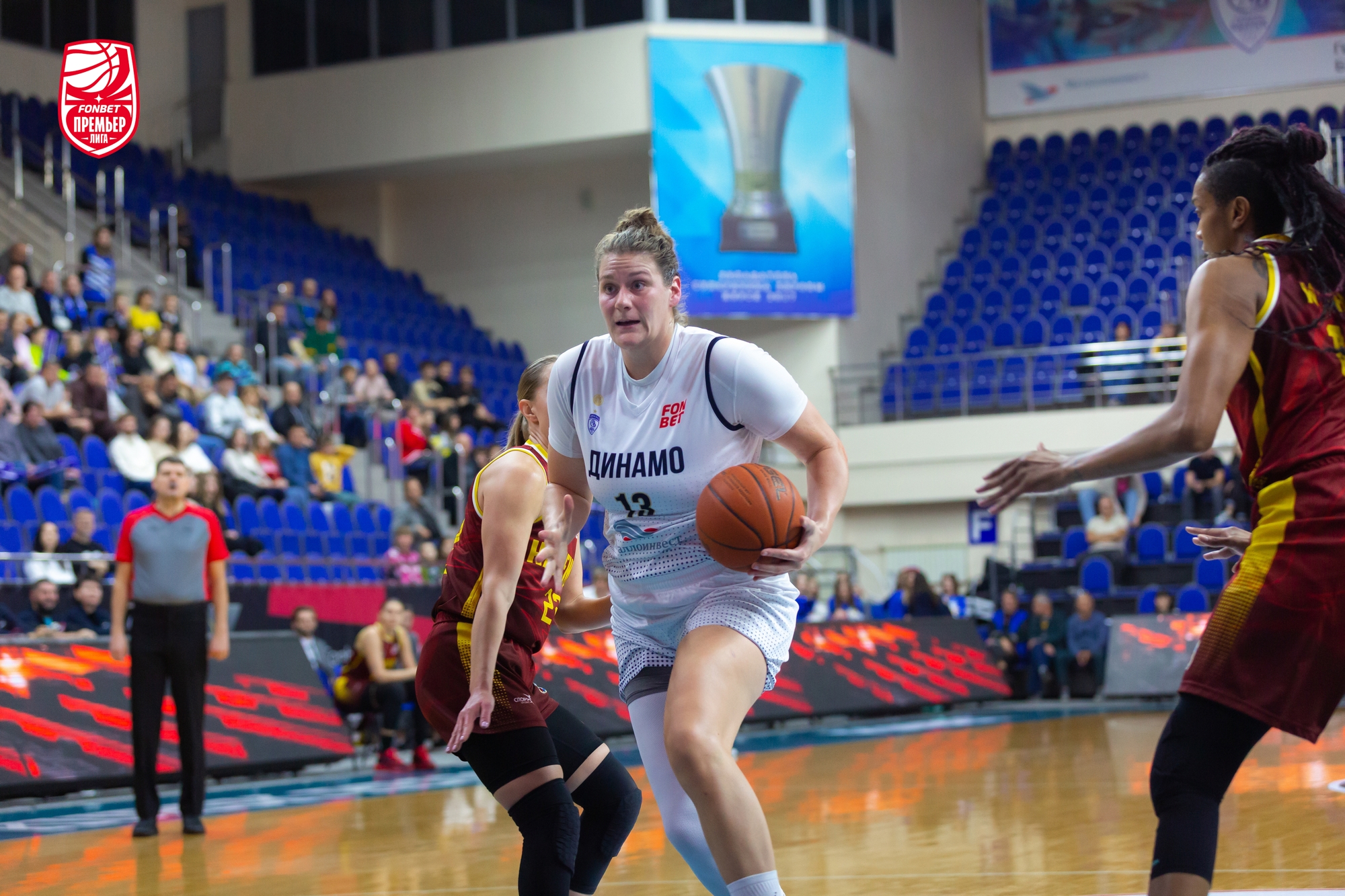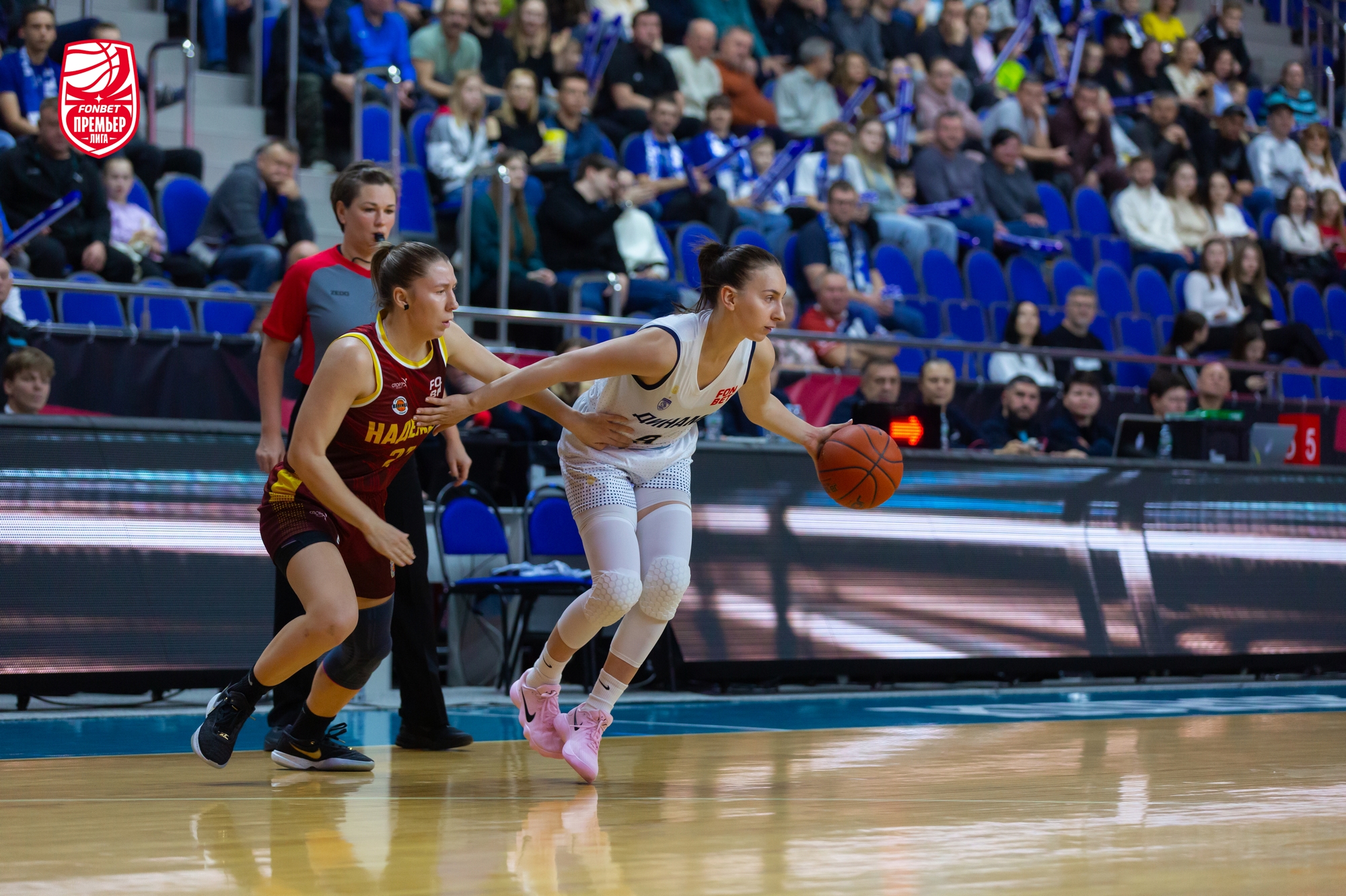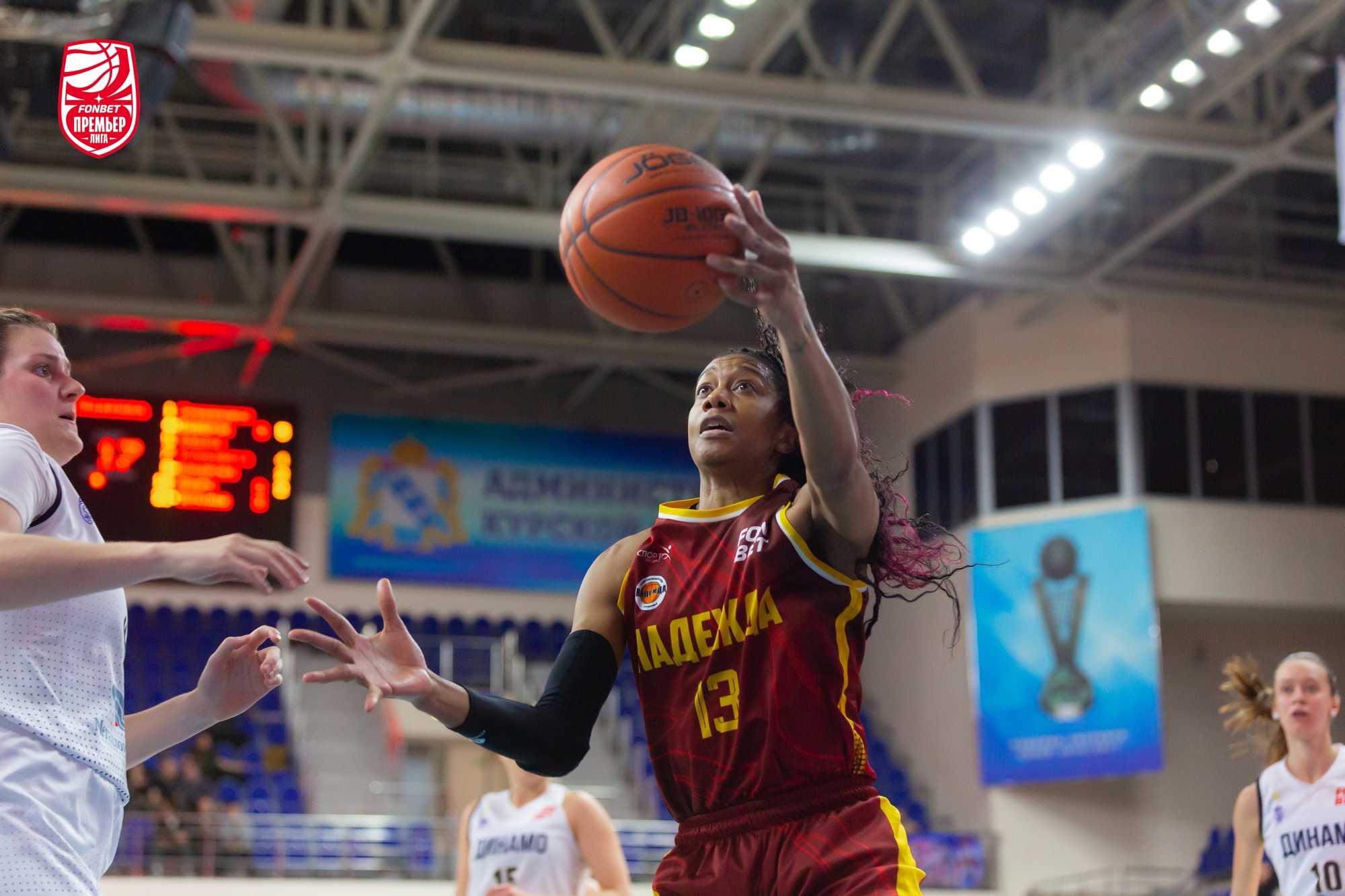 В игру лучше вошли гости: Елизавета Шабанова набрала 4 очка подряд, «трешкой» ее поддержала Александра Штанько. Столичное «Динамо» здорово использовало скорость и активно задействовало в атаке «больших». Хозяйки отвечали точными средними бросками. Из-за дуги попала Кияра Линскенс. Этого не хватало. Команда Владимира Штама уверенно держала нити игры в руках и даже, был момент, вела «+7». До первого перерыва курянкам рывком 5:0, уместившим трехочковый Дарьи Репниковой, удалось минимизировать отставание — 21:23.