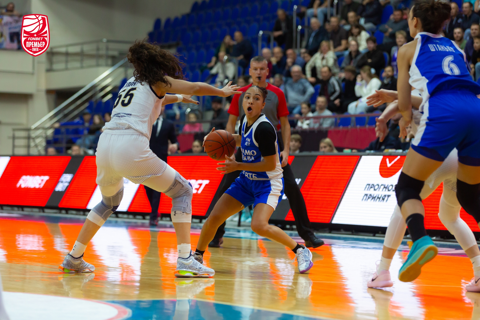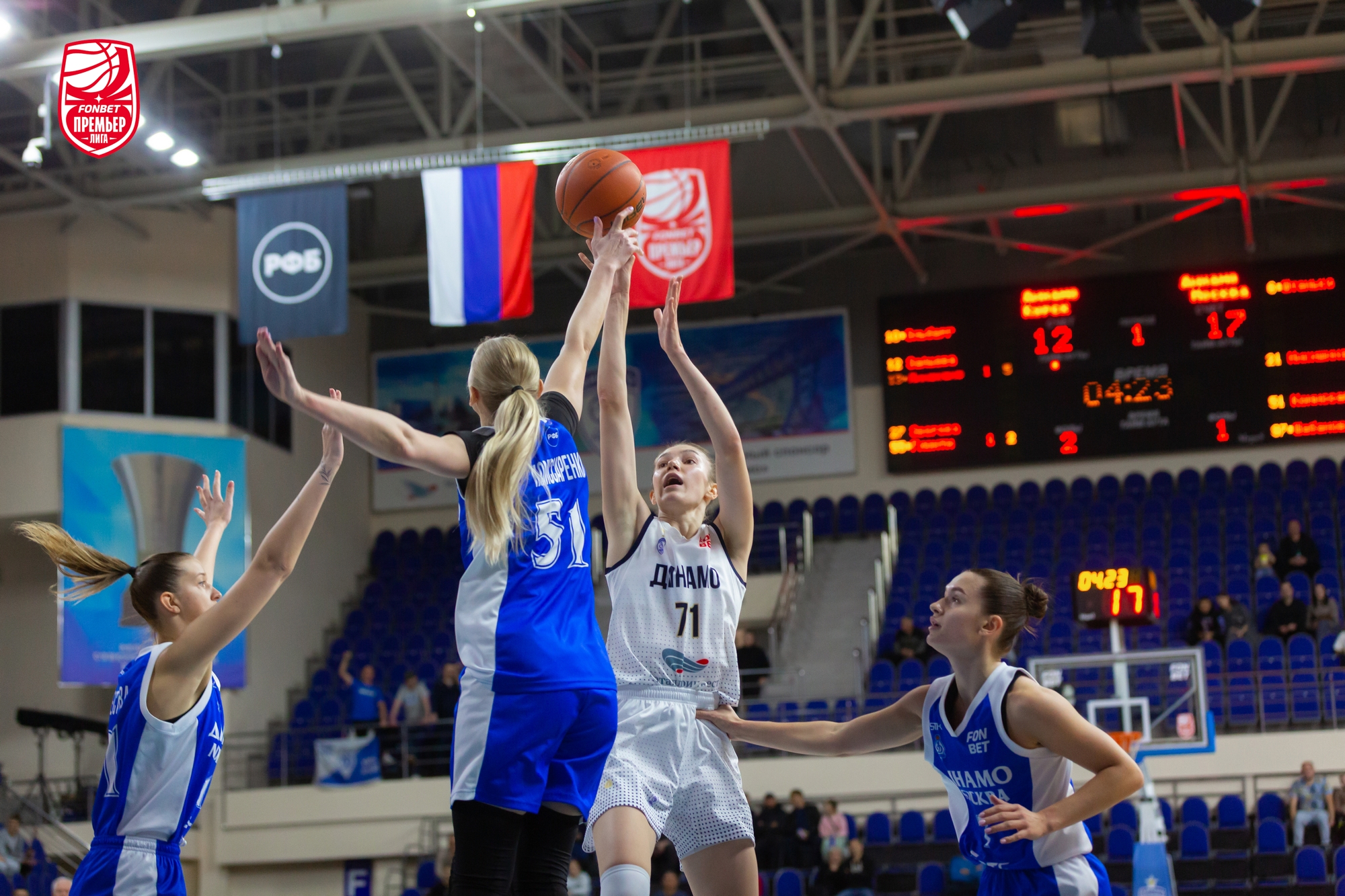 В начале второго периода хозяйки продолжили удачный отрезок, совершив рывок 11:2. Они начали штамповать «трешки»: всего за эту 10-минутку реализовали 6 попыток. Как раз дальнее попадание Ольги Фролкиной вывело ее команду впервые вперед. Москвички удачно огрызались. Так первая половина встречи и завершилась вничью — 41:41.