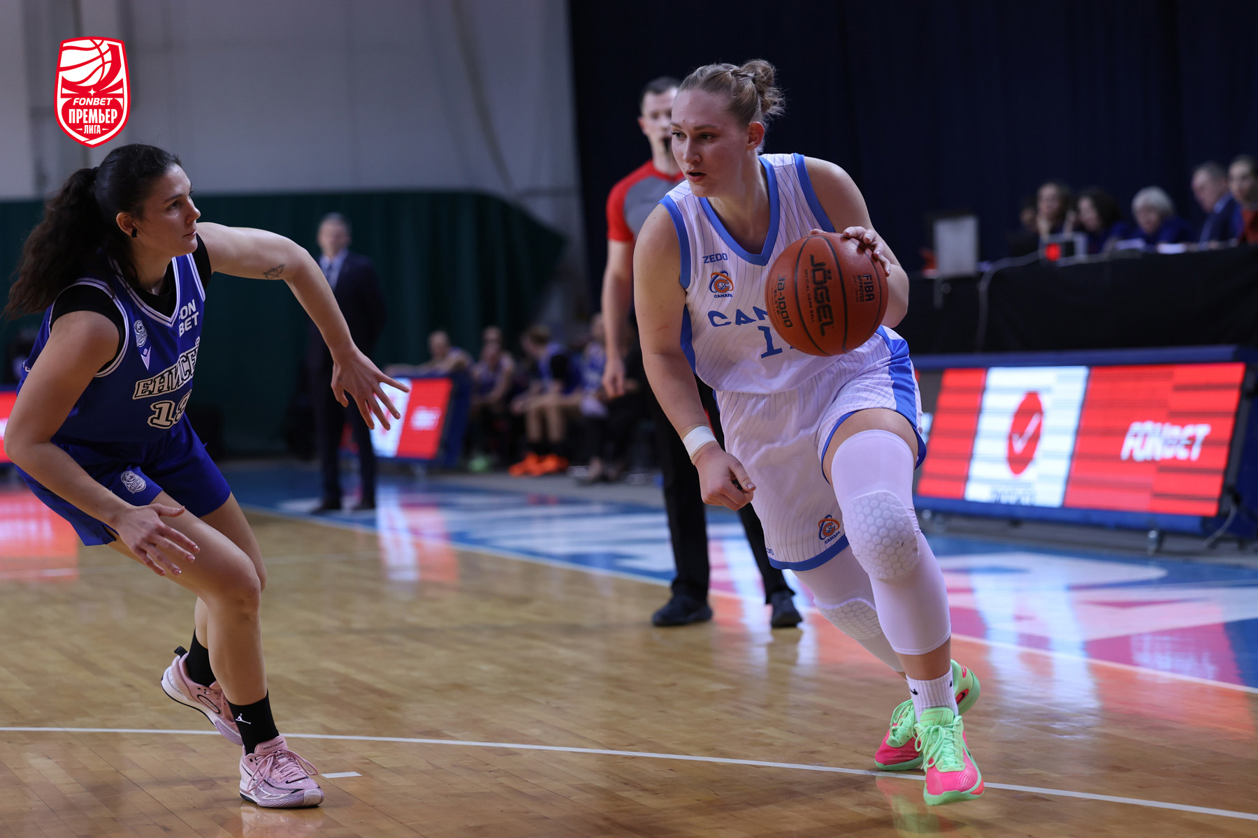Усилиями неудержимой Юлии Полуяновой, которую поддержала Виктория Щербакова, первую четверть «Самара» все же завершила в свою пользу. Полуянова открыла и вторую десятиминутку. «Енисей» держался рядом, на расстоянии одного-двух бросков. Дальнее попадание Елены Михайловой и шикарный проход Сабины Абайдуллиной подарили хозяйкам «+5» к середине периода, а закрепить это преимущество помогли Виктория Щербакова и разыгравшаяся Елена Михайлова: за две с половиной минуты до большого перерыва хозяйки повели уже «+10». Отдыхать соперницы отправились при 8-очковом перевесе «Самары» - 42:34.