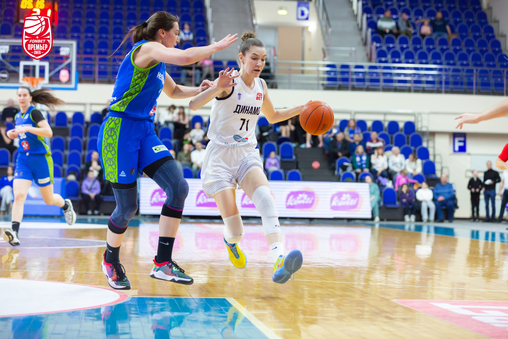 Провал у гостей случился в начале второго периода. Динамовки рывком 10:2 с двумя дальними попаданиями Ольги Фролкиной и Нины Глонти сделали «+9». Потом случились и «+11». Анна Пачурина была настроена решительно, отыграла 5 очков подряд. Александр Ковалев взял первый свой тайм-аут. Не обошлось без «перестрелки» из-за дуги. Сошлись Вероника Сазонова и Ольга Столяр. Победила курянка. 37:28 в пользу хозяек после 20 минут встречи.