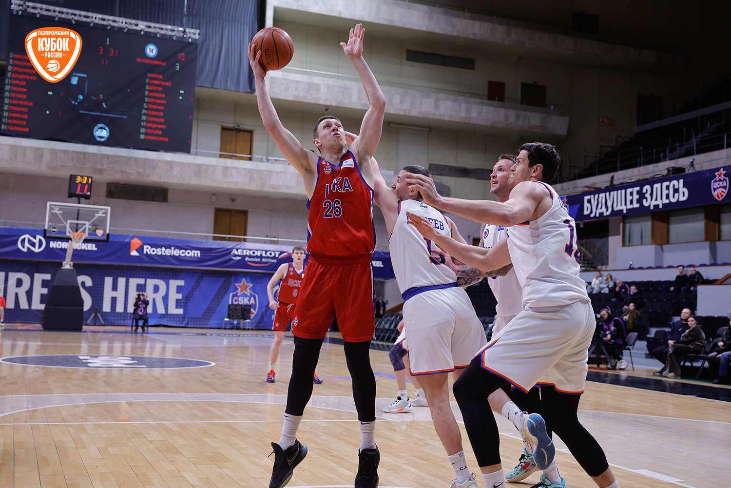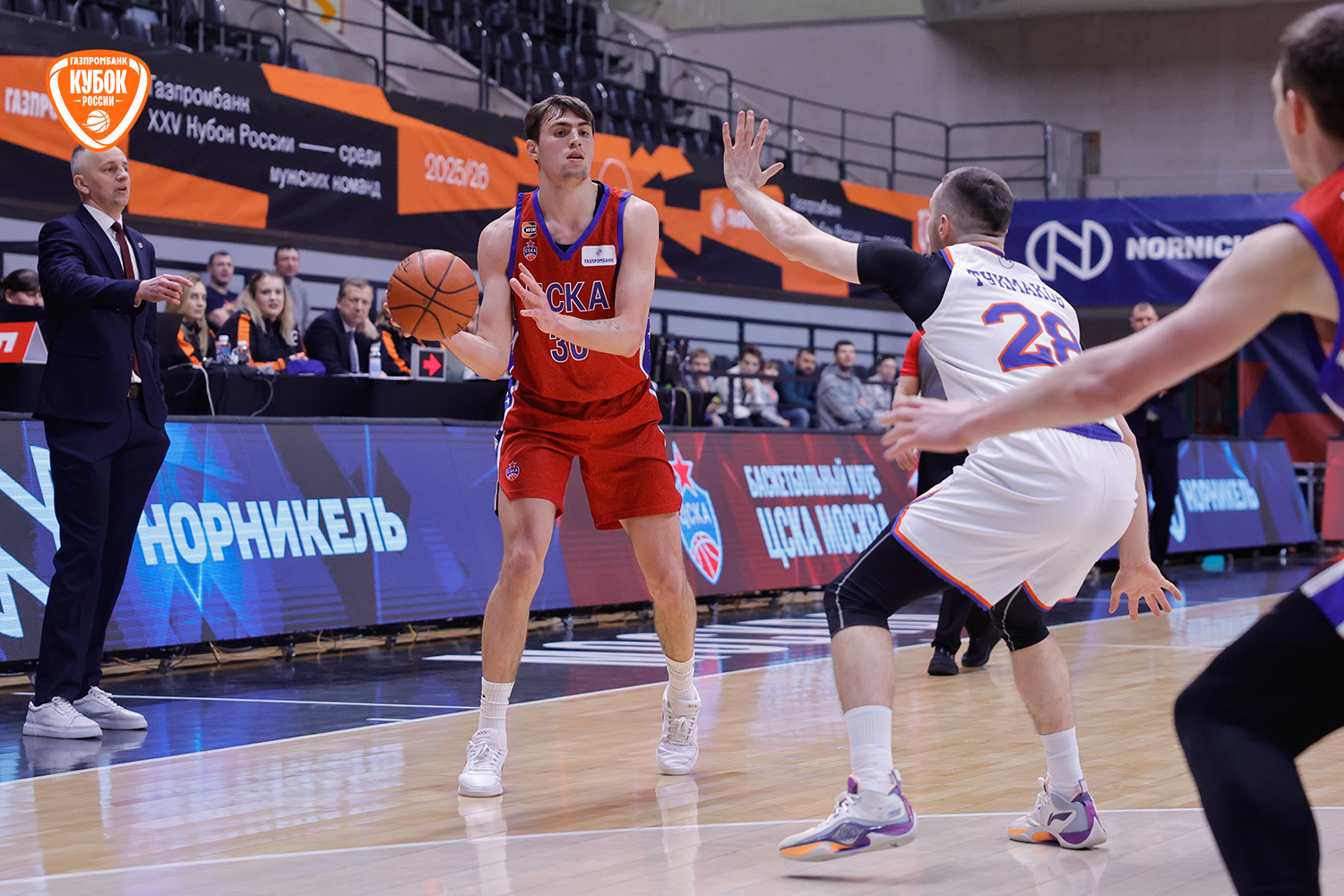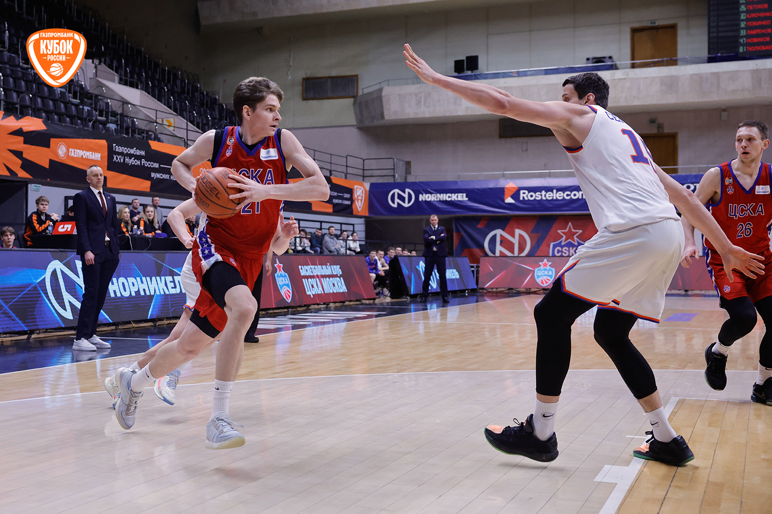 Во второй четверти красно-синие продолжили гнуть свою линию. Кирилл Григорий сверхуверенно вошел в игру, дважды хладнокровно реализовав броски со средней дистанции. Атакующий порыв поддержали точные дальние попадания Ключенкова и Никонова. Серия обоюдных тайм-аутов слегка сбила темп, но ЦСКА-2 действовал собраннее, контролируя ход встречи. К большому перерыву армейцы оформили задел «+6».