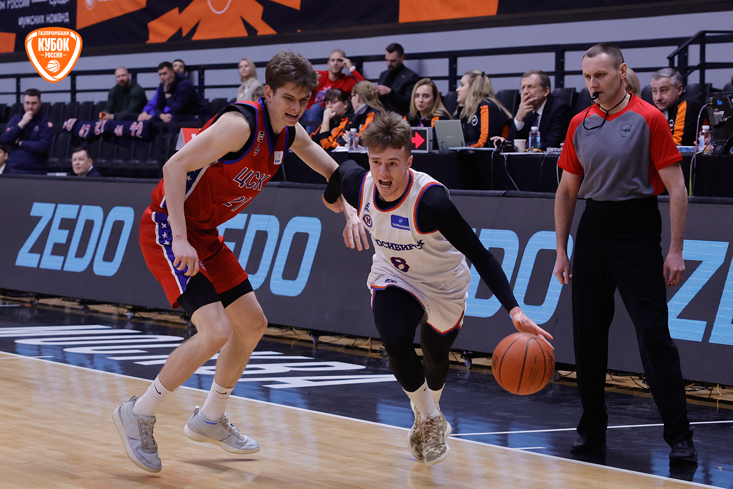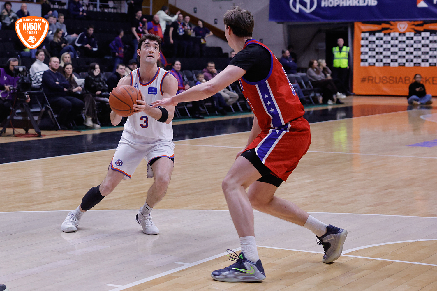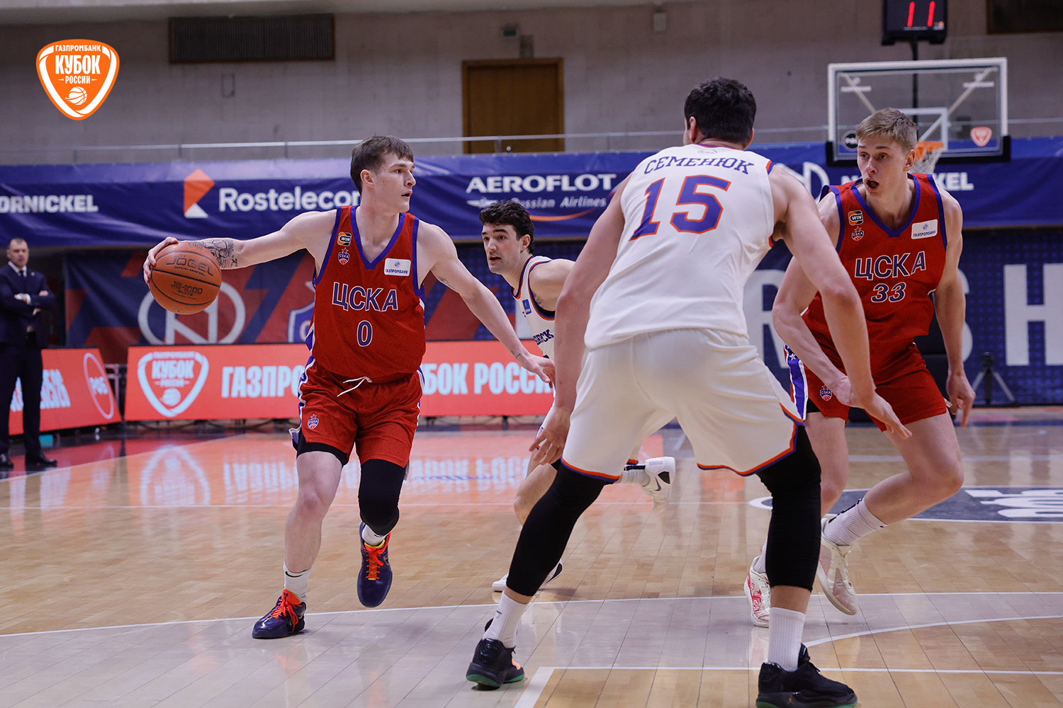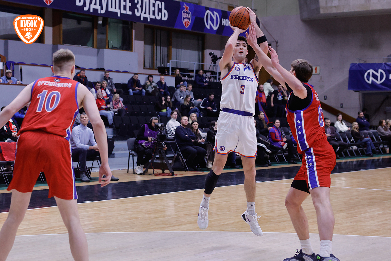 Красно-синие с первых секунд вышли максимально заряженными, сходу обозначив свои намерения. Егор Покинко взял игру на себя и открыл матч стремительным рывком 5:0, задав высокий темп встречи. Однако «Новосибирск» быстро погасил стартовый пыл хозяев, сравнял счет, а после точного броска со средней дистанции Артема Комиссарова гости и вовсе вышли вперед. С выходом Ивана Зайцева и Даниила Ключенкова армейцы стали действовать собраннее и увереннее, плотнее защищались и навязывали борьбу на каждом участке паркета. Красно-синие ненадолго выходили вперед, но новосибирцы тут же нивелировали отставание. «Трешка» Ярослава Никонова под занавес четверти «взорвала» трибуны, однако Комиссаров ответил тем же. Итог стартового отрезка - 19:17.