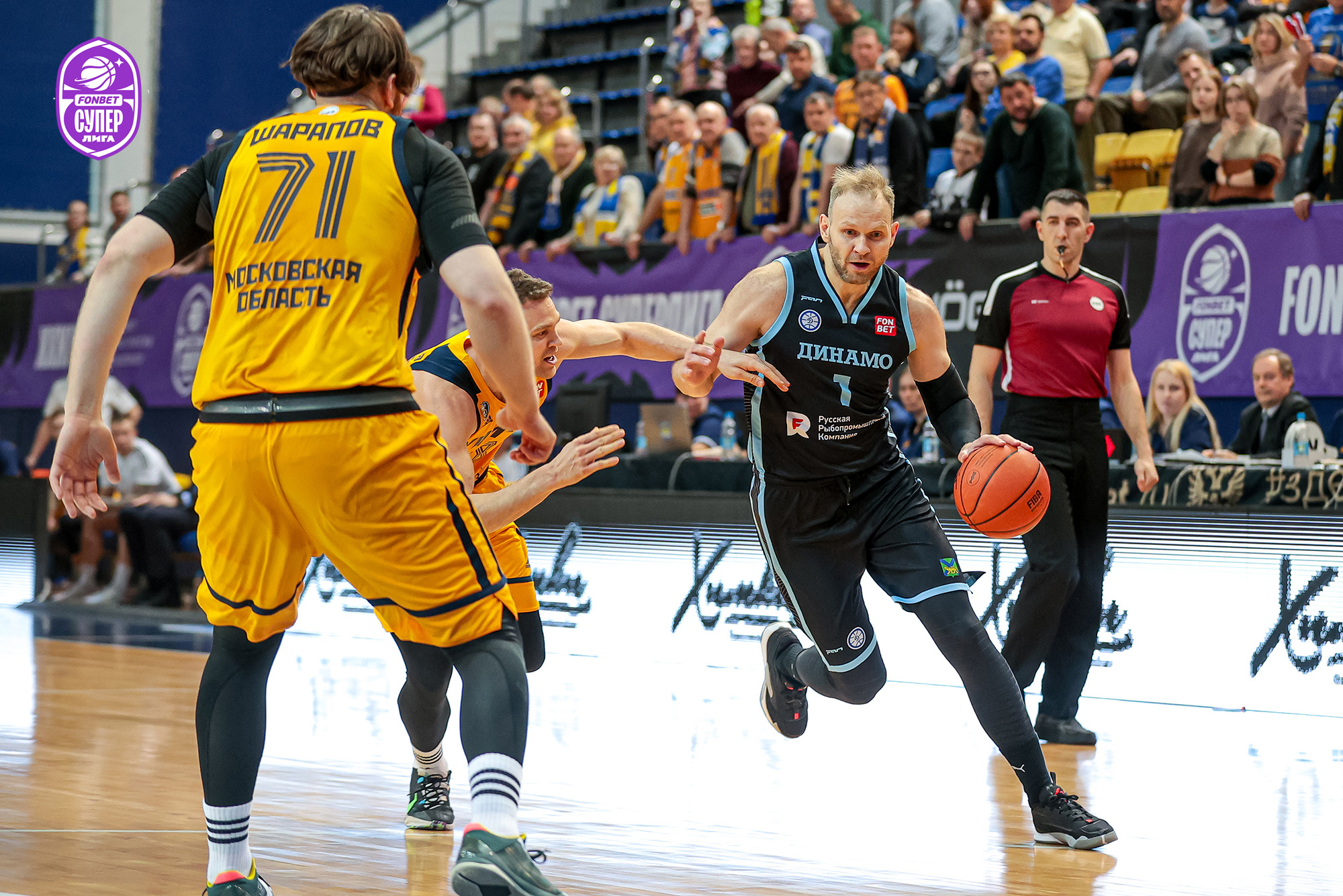 Во второй четверти игра была равной, причем как по счету, так и в целом по тому, что происходило на паркете. «Динамо» в какой-то момент подобралось на расстояние в 2 очка, однако точные атаки Заряжко и Попова восстановили статус-кво в отдельно взятой четверти — те же 9 очков к большому перерыву.