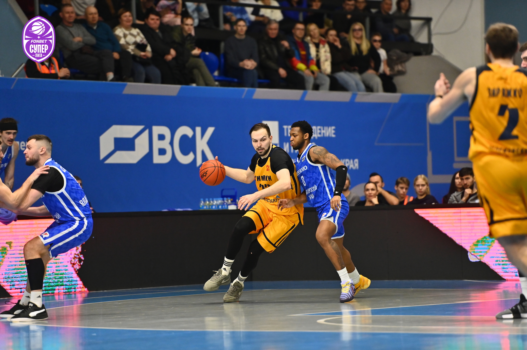 Кроули и Стребков шикарно ворвались во второй период, однако у «Химок» вовремя подоспели трехочковые атаки. При этом отличились «высокие» – Шарапов и Фидий. Следом на смену лидерства из-за дуги попал Востриков (26:28). Эдуард Сандлер пытался сбить гостей с ритма, однако у химчан получалось многое – 32:41.