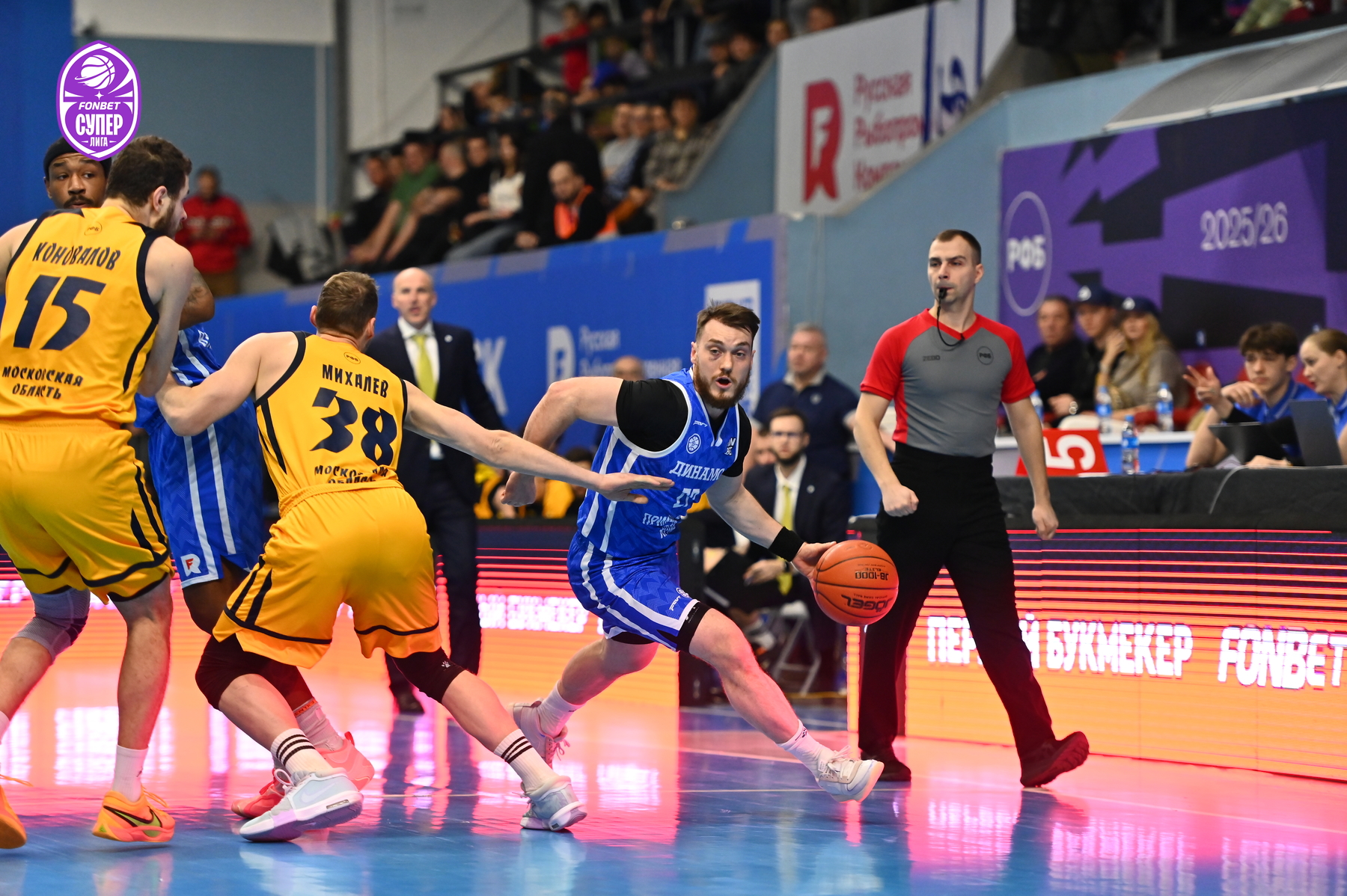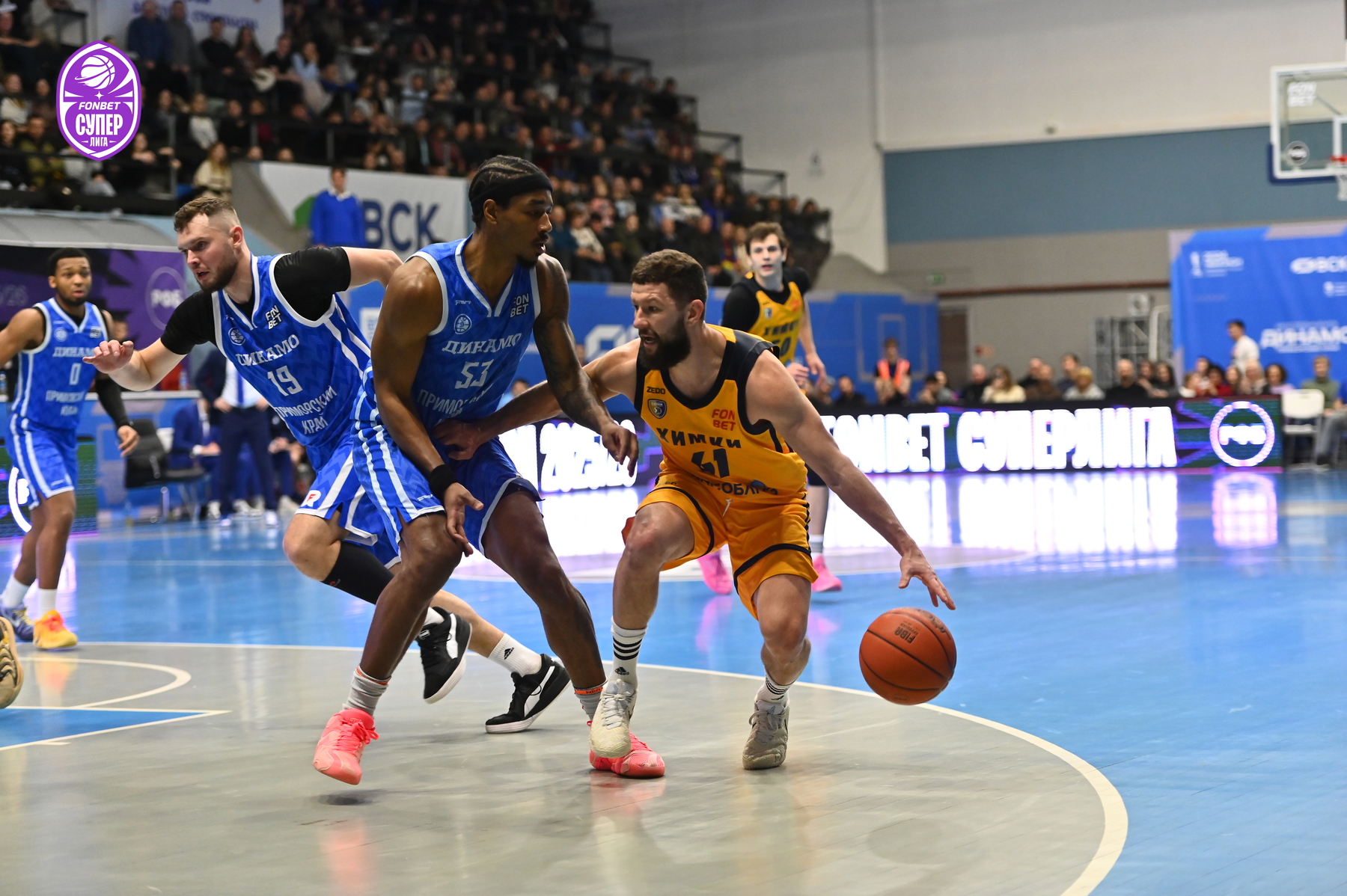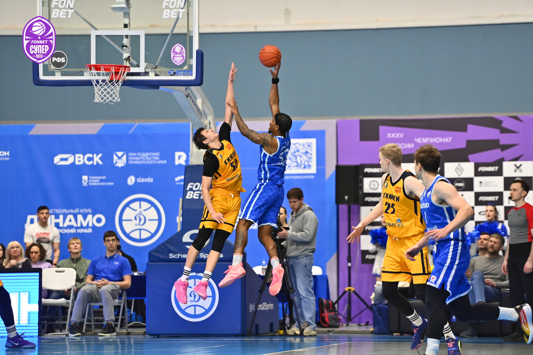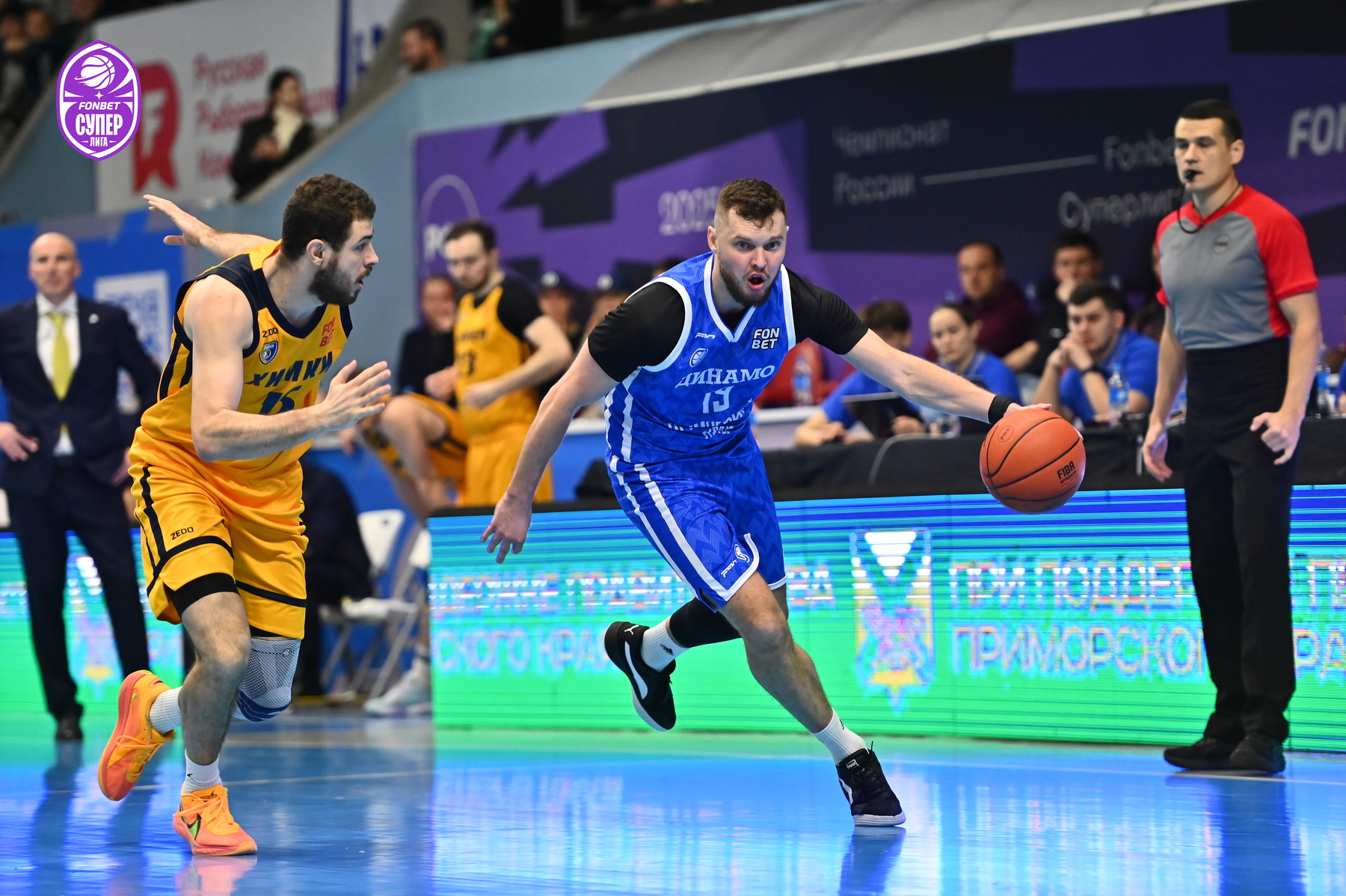 Уже за день до игры на поединок против «Химок» были раскуплены все билеты – принципиальнейшее противостояние приморские болельщики не пропускают. Ответственно к сопернику подошли и динамовцы – Аксёнов задал высокий тон игре, реализовав трёхочковый. Поначалу «Химки» не отставали, но бросок сверху Десятникова спровоцировал тайм-аут Романа Семернинова - 11:4. Смит быстро получил два фола, и вместо него вышел Стребков, который тут же набрал 5 очков кряду и отдал пас на Кроули, метко атаковавшему издали (19:6). Однако затем гости набрали 8 безответных очков - 19:14.