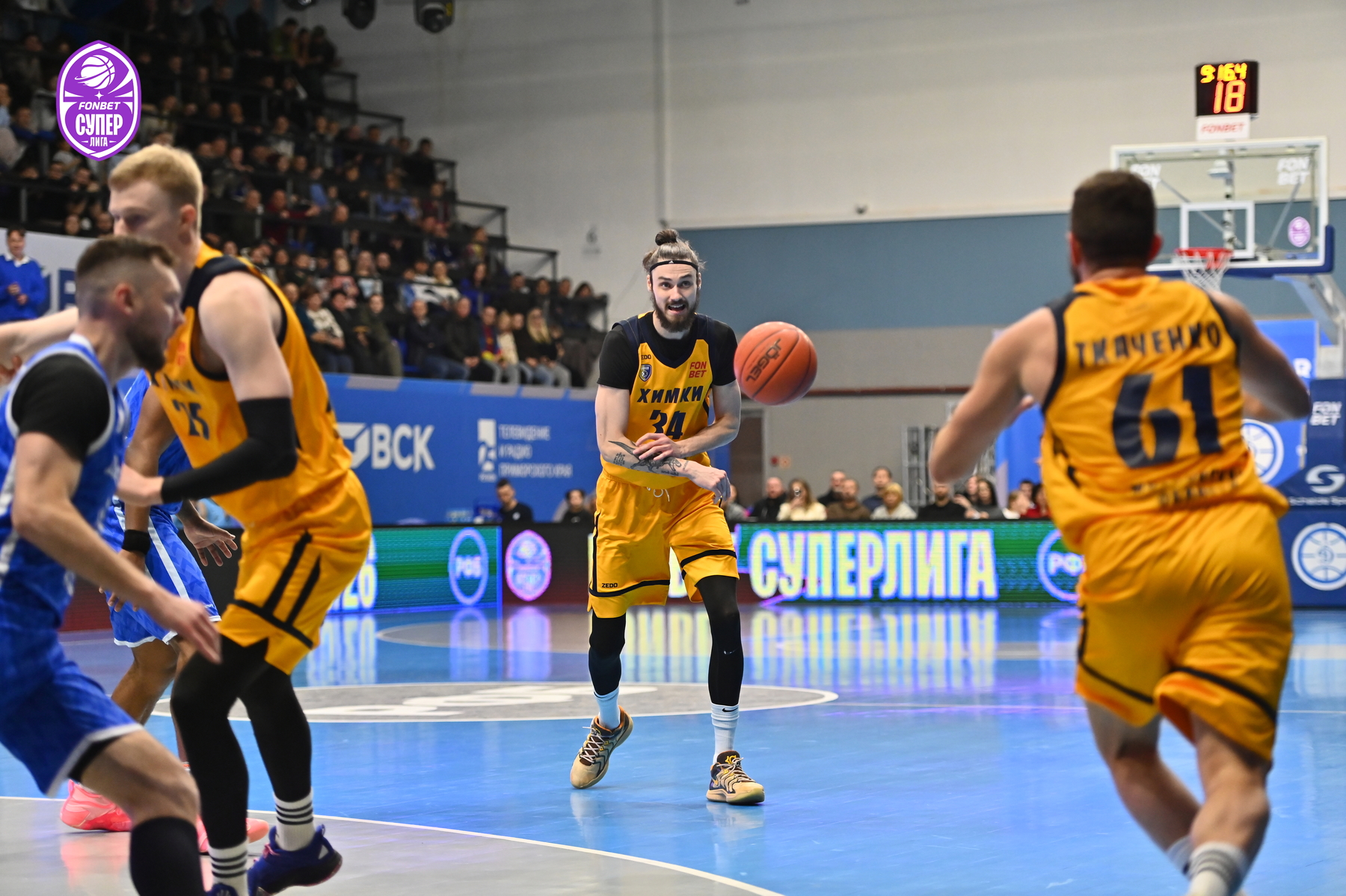 В дебюте второй половины данки на публику оформили Заряжко и Десятников, при этом экс-спартаковец успел заложить «треху» и ассистировать Карванену и Коновалову - 36:52. Далее команды устроили обмен фолами, а в концовке – трехочковыми. У «Химок» вышло на одно попадание больше – 52:70.