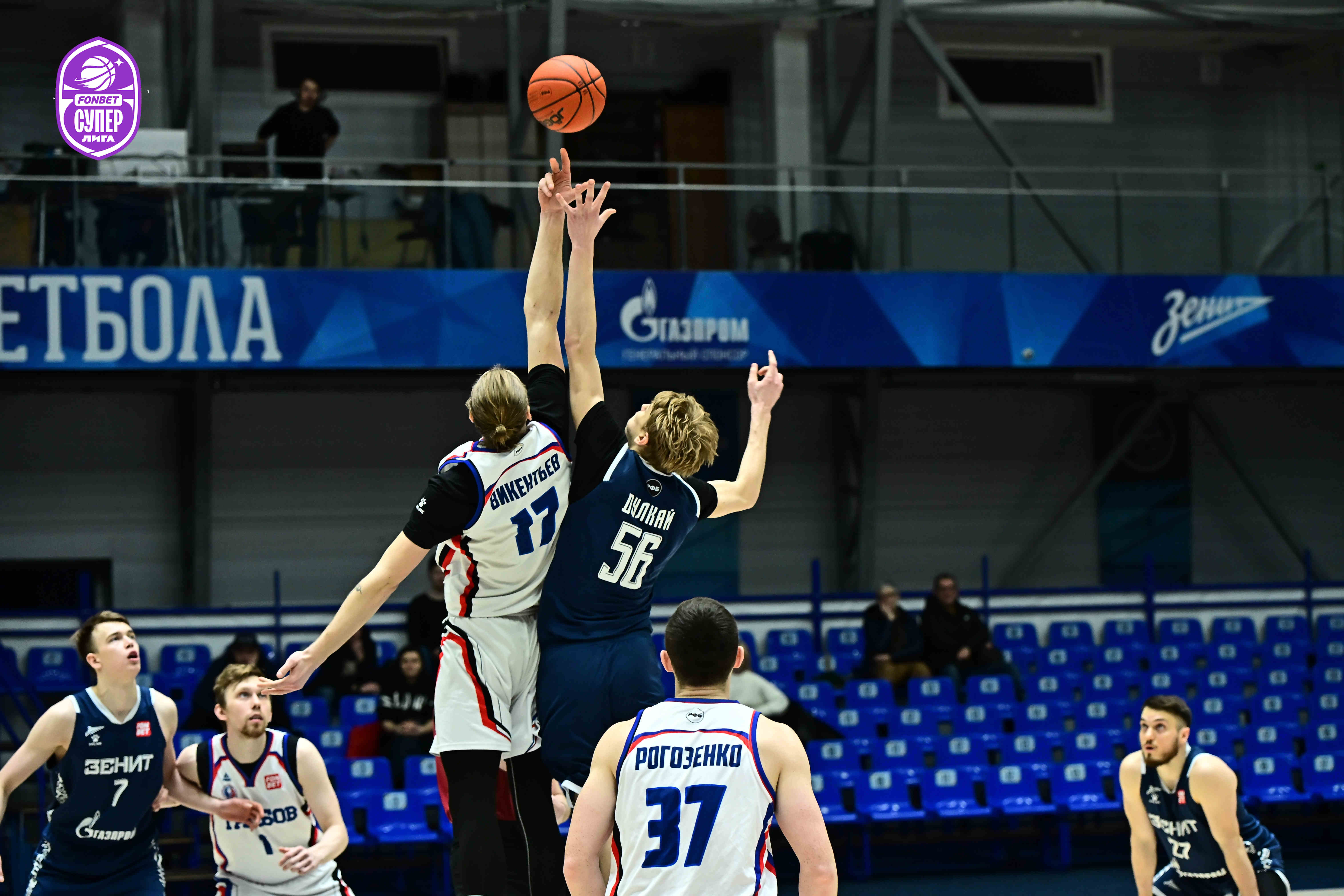 Игра с самого начала пошла на высоких скоростях. Команды поочередно выдавали удачные отрезки. Первым инициативу захватил «Тамбов», совершив рывок 9:2, что вынудило тренерский штаб «Зенита»-2 взять ранний тайм-аут. Постепенно петербуржцы стали находить свою игру и исправлять проблемы с реализацией, которые преследовали их на старте. Владислав Самухин забил с фолом (2+1), Павел Земский эффектно забросил сверху, а Иван Прокопенко был точен со штрафной линии — это позволило сократить разницу до одного владения. Однако гости быстро вернулись и буквально за несколько минут снова ушли в отрыв, доведя его до «+9». Действия зенитовцев, а именно трехочковый Ходорича и проход Земского в концовке четверти, немного сбавили темп игры, но первая десятиминутка осталась за «Тамбовом» — 13:20.