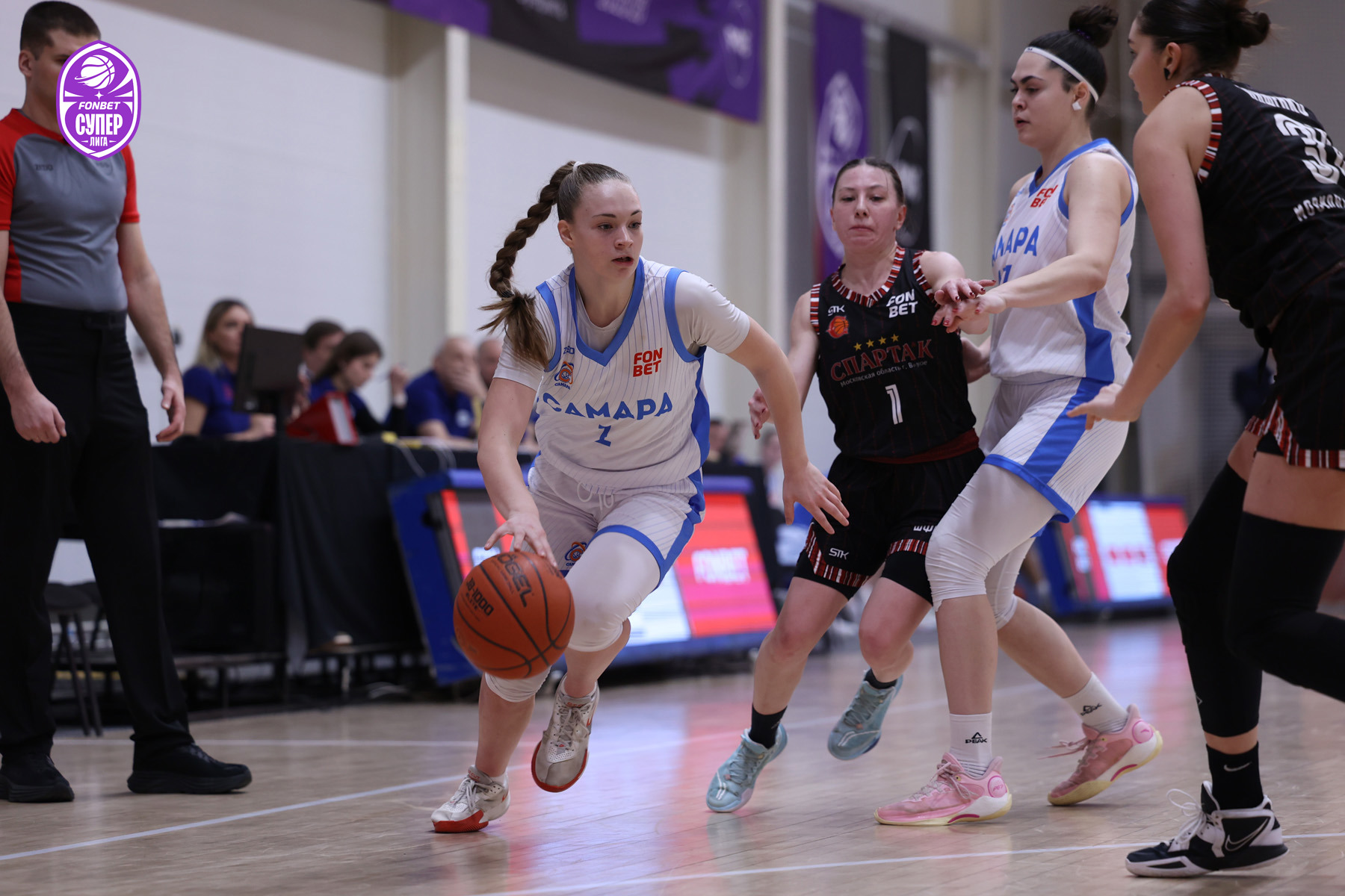 За первые две с половиной минуты хозяйки реализовали две дальние попытки (отличились Екатерина Тихонова и Виктория Курильчук) и не дали видновчанкам убежать далеко вперед: 8:10. Но затем полетело и у гостей, которым удался рывок 13:1. Пока «Самара» набирала очки исключительно с линии штрафных, смазав восемь подряд попыток с игры, соперницы атаковали куда эффективнее, без видимых проблем удерживая комфортное преимущество: 13:27 по итогам первой четверти.