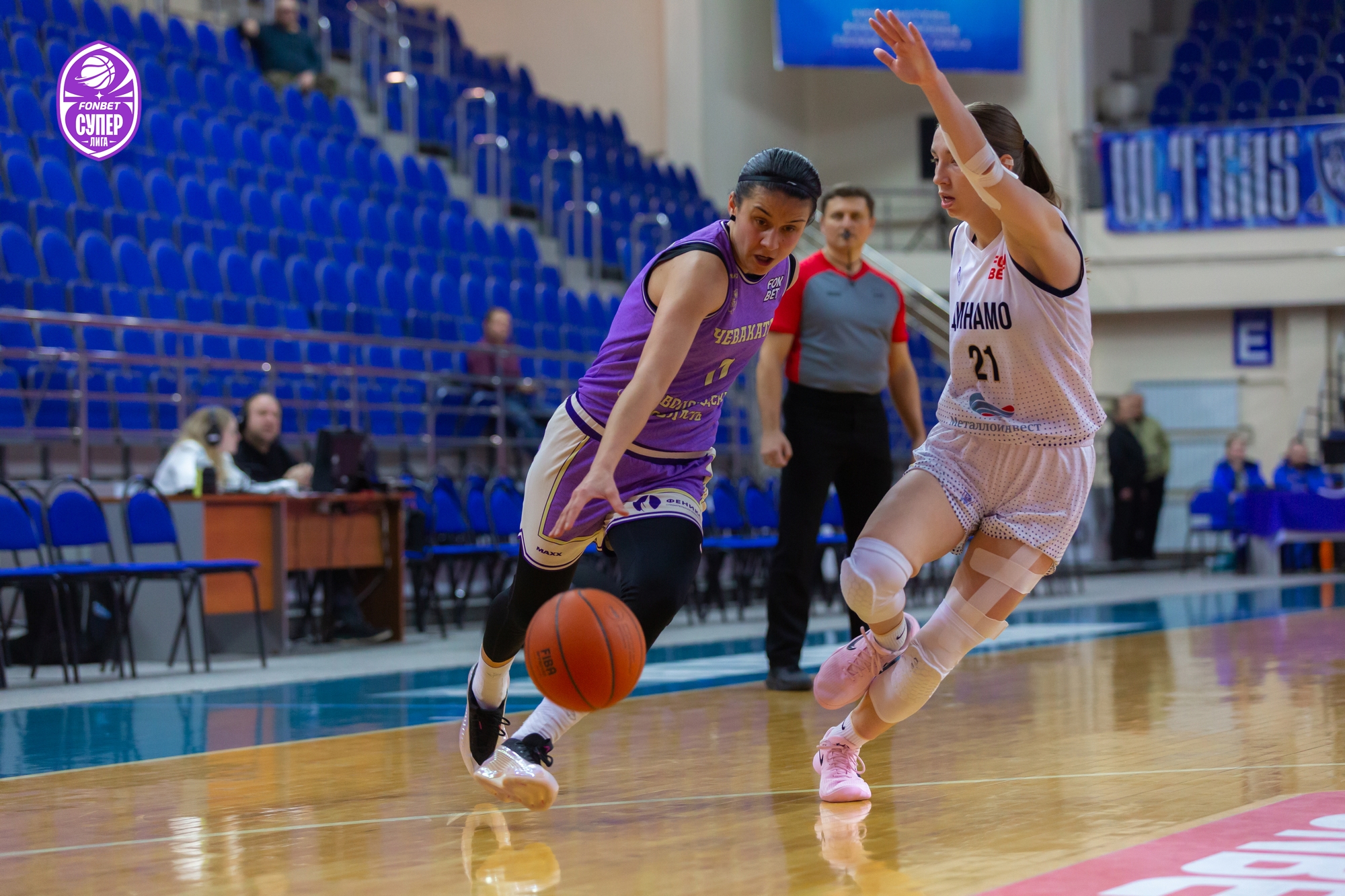 «Чеваката» приехала в Курск после двух домашних поражений подряд — и без Кристины Бакаевой и Алины Замараевой, восстанавливающихся после повреждений. «Фарм» привез с выезда победу в двух матчах, уступив лишь лидеру чемпионата «Владимирским львицам-ВлГУ». Как ни крути, сегодняшний матч должен был получиться огненным. Так и вышло... но первого забитого мяча пришлось ждать больше двух минут. Из-за дуги отличилась центровая «Чевакаты» Елизавета Зайцева. У «Динамо» нашелся достойный ответ в лице Полины Костюковец. Она набрала 5 очков подряд и вывела свою команду вперед. Как оказалось, не надолго. «Пчелы» атаковали лучше соперника, реже теряли мяч и здорово защищались. За четыре минуты до первого перерыва бело-голубые ни разу не поразили кольцо —14:8 в пользу Вологды.