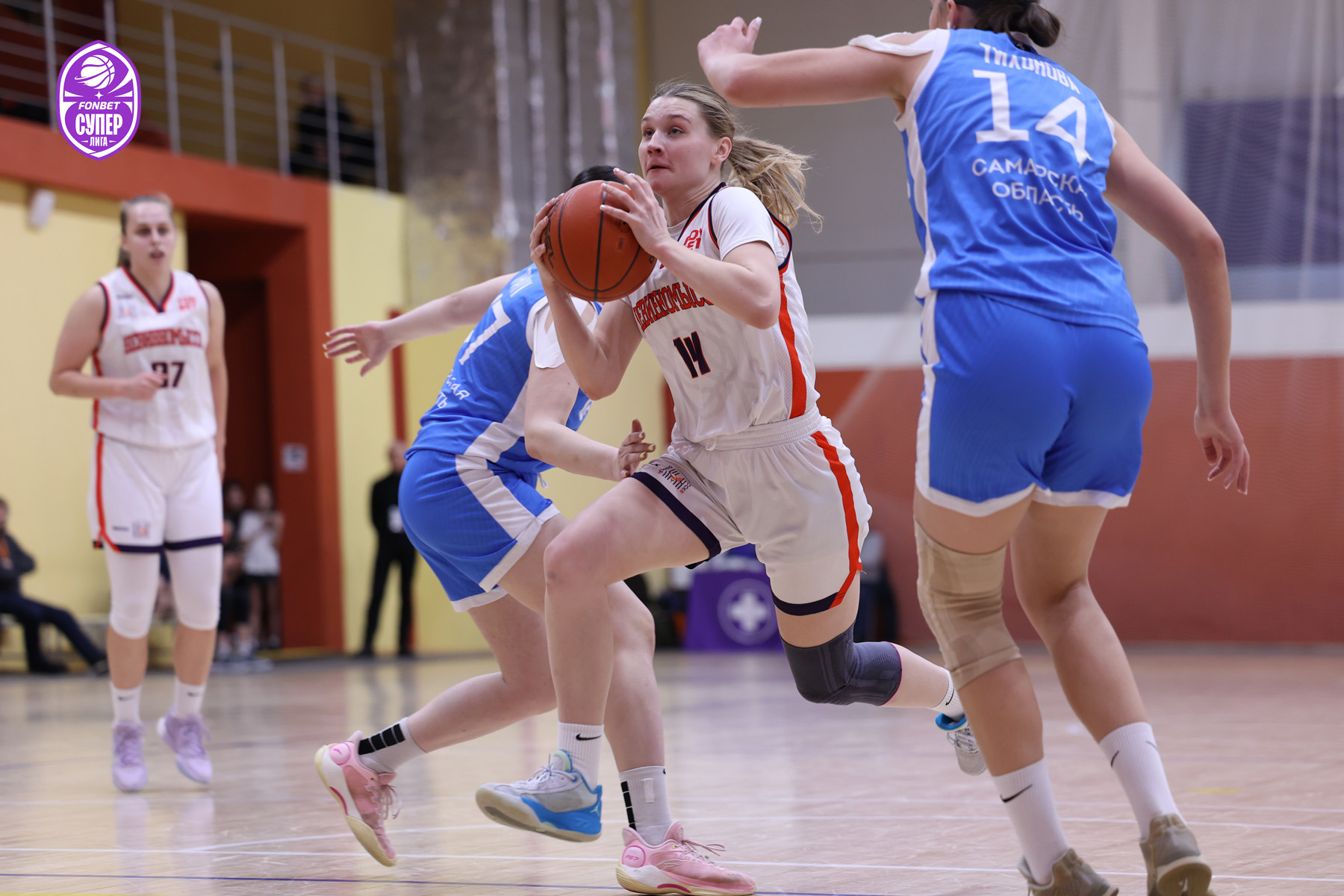 А ударно начав и второй период, хозяйки быстро довели преимущество до максимальных 12 очков: 31:19 после точного штрафного от Софьи Трачук. Трачук же по-капитански потащила самарское нападение, когда оно чуть забарахлило: 8 очков за полторы минуты — и 39:38 к середине четверти. Но и гостьи, уже почувствовав бросок, держались теперь рядом, давая понять: «Самаре-2» расслабляться не стоит. Впрочем, у хозяек каждый раз находились новые герои: эстафету от капитана приняла Екатерина Тихонова, набравшая 6 очков подряд. Она и подытожила первую половину: 49:38.