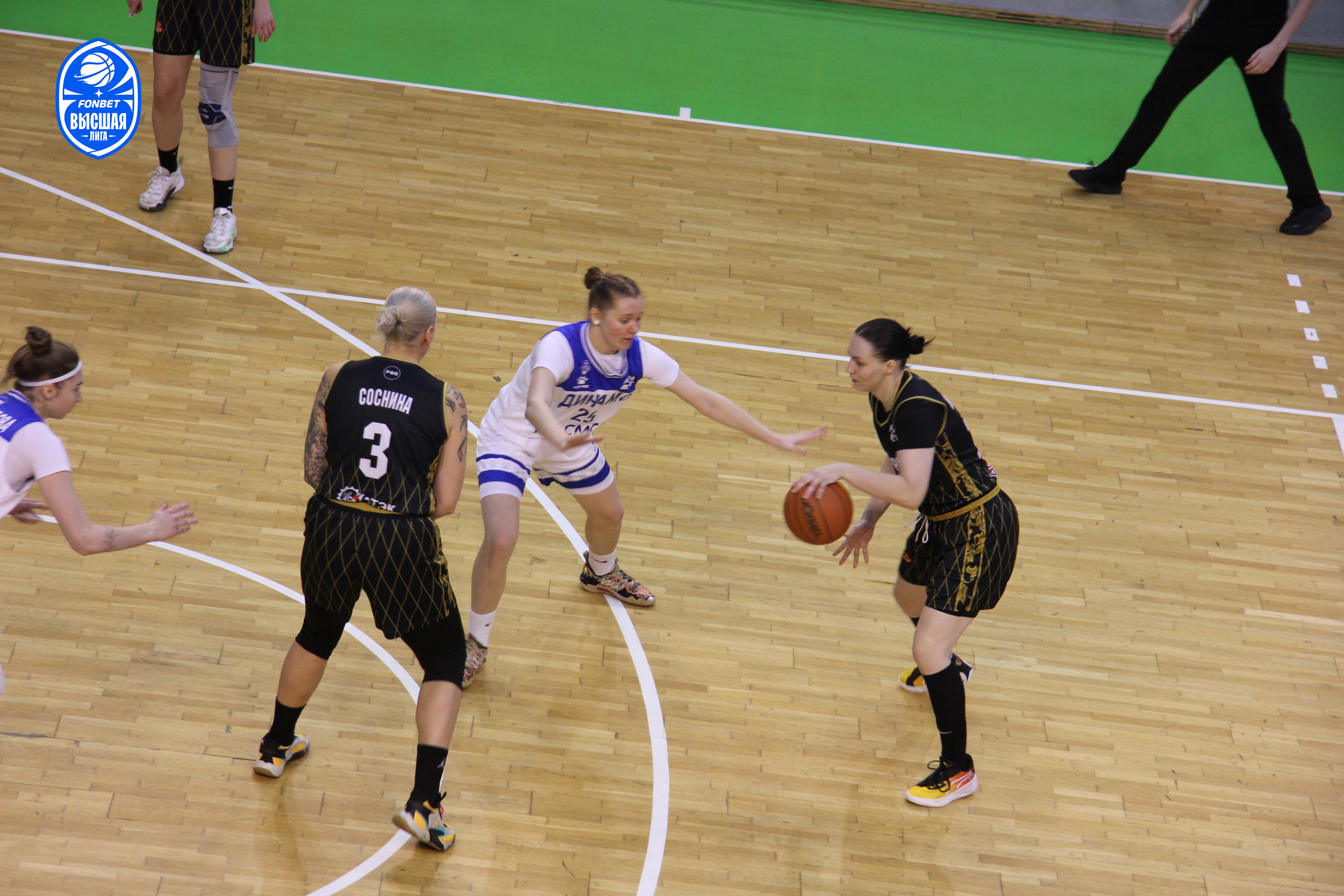 Восьмиочковое преимущество лидеров держалось до последних трех минут четверти. Дальше Татьяна Казакова забила несколько мячей подряд и чуть было не перевела игру в овертайм! На последних секундах встречи Татьяна пошла в тяжелый проход, но защищавшаяся против нее Мария Баженова смогла отстоять свое кольцо, а вместе с ним и добыть победу для своей команды — 69:67 в пользу «Динамо-2».