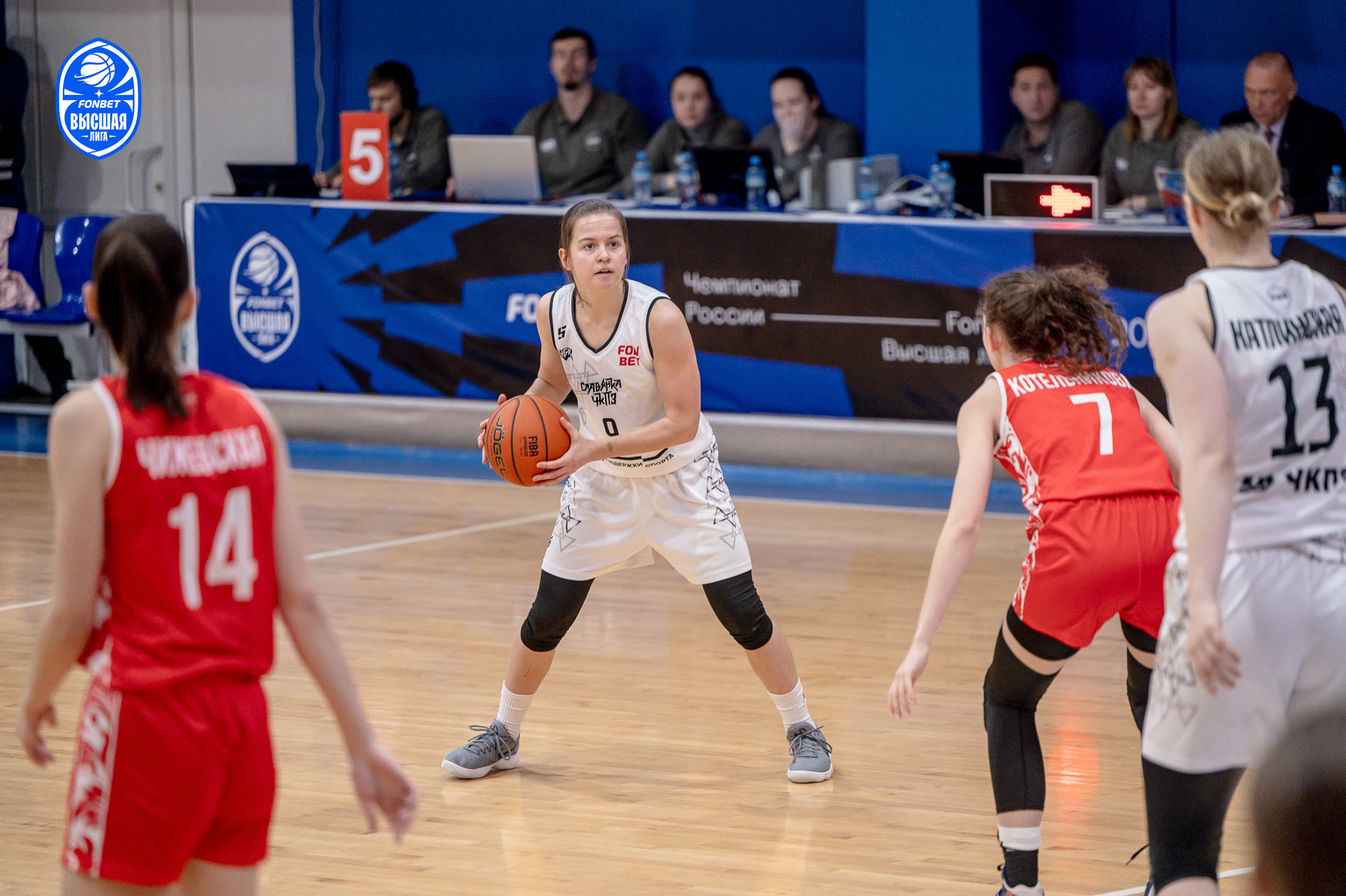 Набором очков для своей команды отметилась Ольга Сизякова, а в ответной атаке Алиса Грачева забила с прохода. Вскоре Полина Веробей была точна с дуги и не позволила «Славянке-ЧКПЗ» выйти в счете вперед. Даяна Динза Эрнандес набрала два очка с линии штрафных и сравняла счет. Но все же девушки из Пензы смогли сохранить свое преимущество. Первая половина матча закончилась со счетом 39:41.