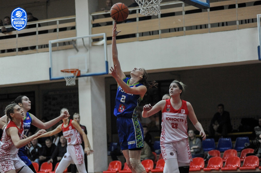 Гости с самого начала встречи старались навязать хозяйкам площадки свою игру, и отчасти это у них получилось. За полторы минуты они смогли набрать 7 очков, в то время как «Юность» — ни одного, но постепенно подопечные Дмитрия Нестеровского выровняли ситуацию и завершили первую четверть со счетом 16:17.