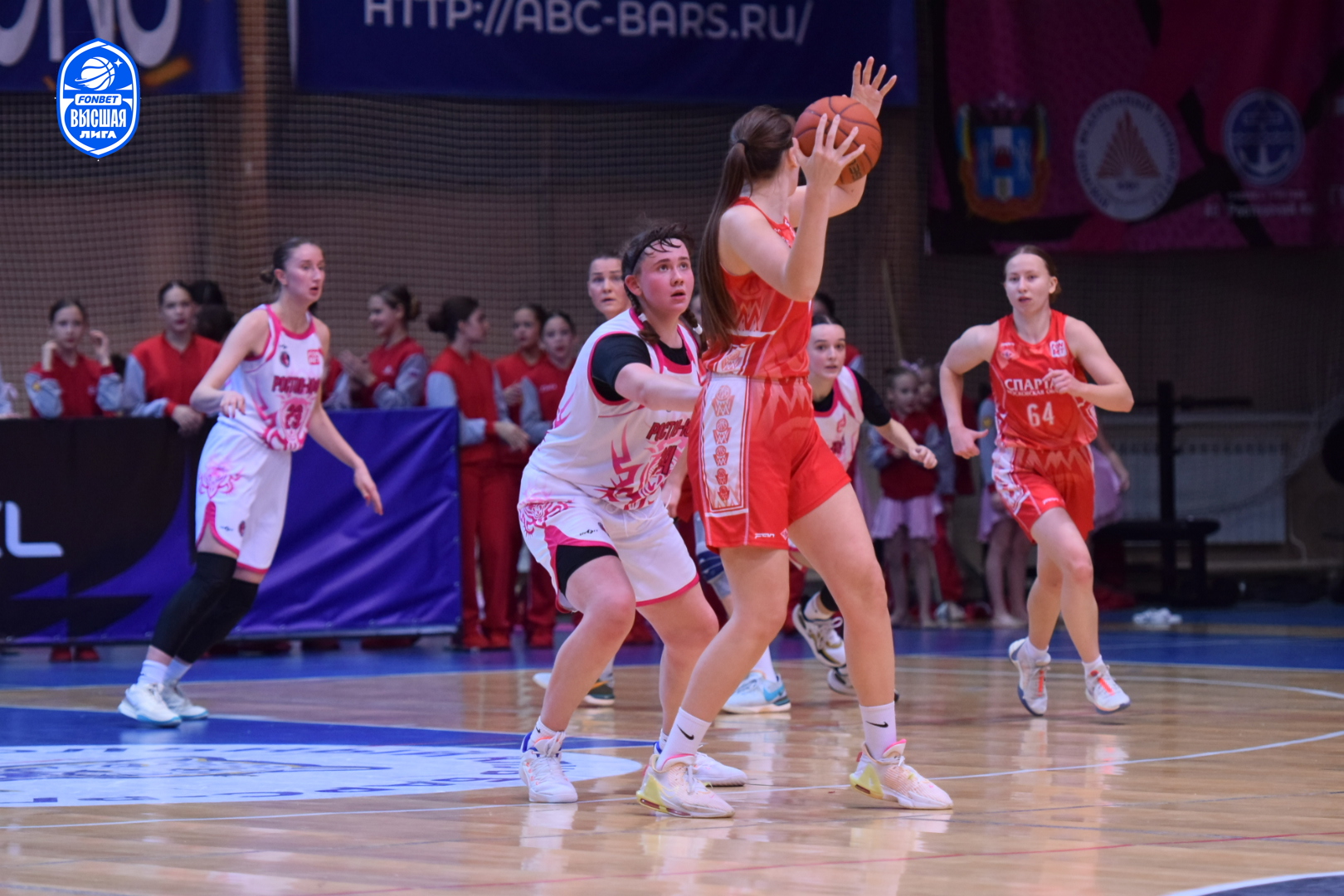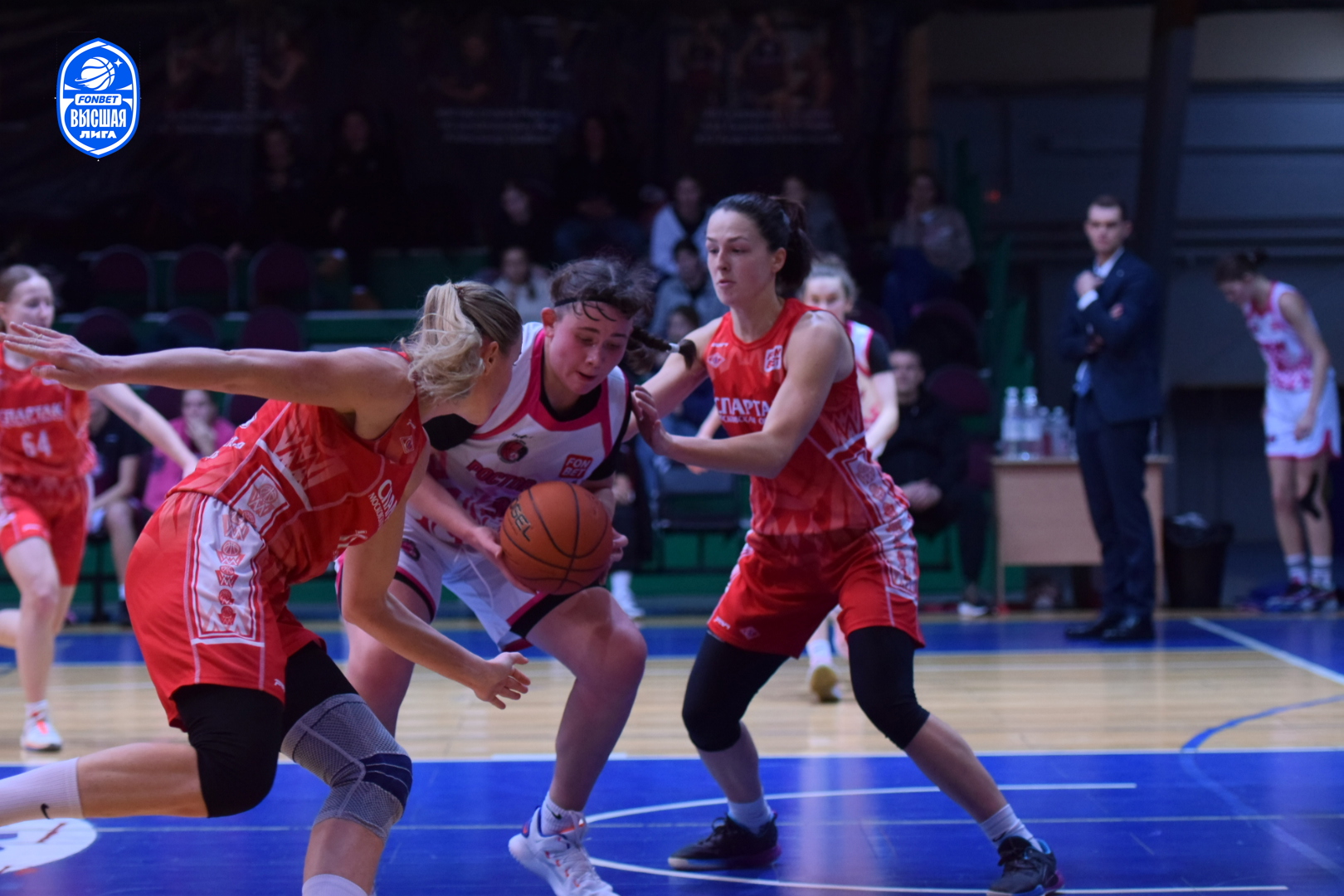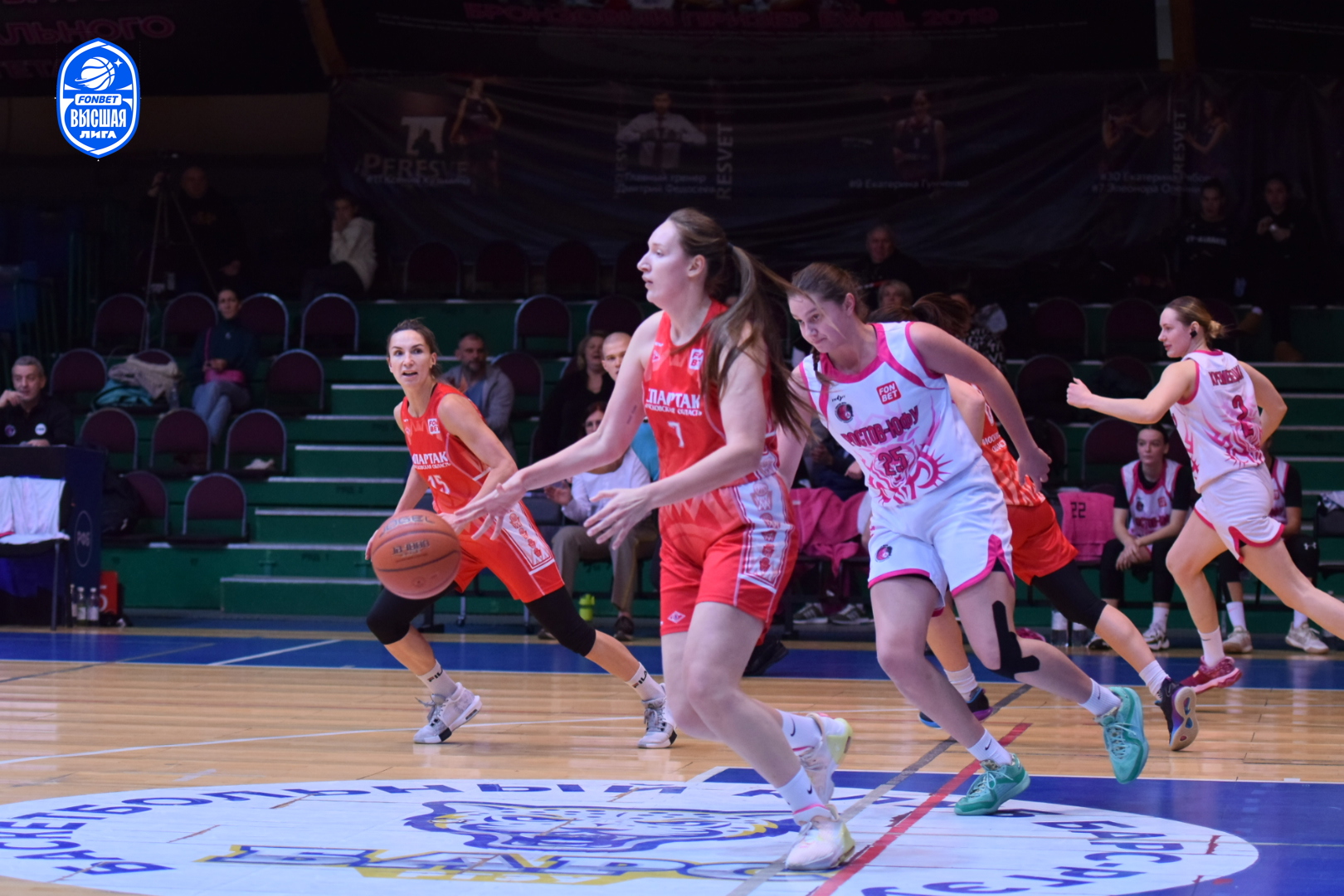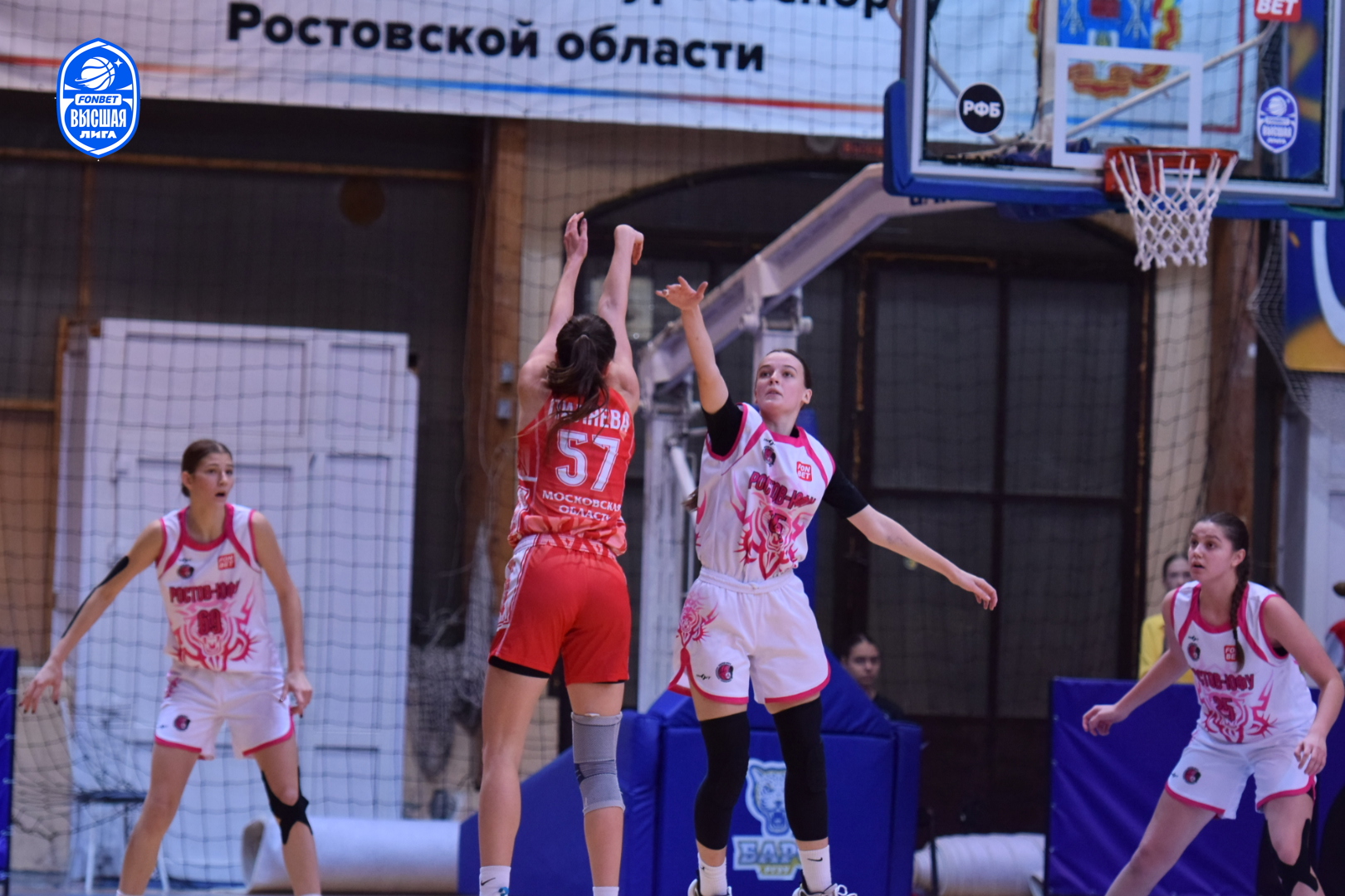 Настрой молодого ростовского коллектива дать бой фавориту был заметен с первых секунд поединка. Агрессивная и самоотверженная работа в обороне хозяек площадки раз за разом заставляла подмосковных баскетболисток ошибаться в атаке. Первый период завершился с минимальным преимуществом "Ростова-ЮФУ" - 14:13. Равная борьба происходила на площадке и в дальнейшем. Ростовчанки несколько раз пытались оторваться в счёте, но опытные спартаковки не позволяли им сделать этого. Оставив за собой вторую (22:21) и третью (17:16) четверти, "пантеры" выходили на решающий период, лидируя 53:50.