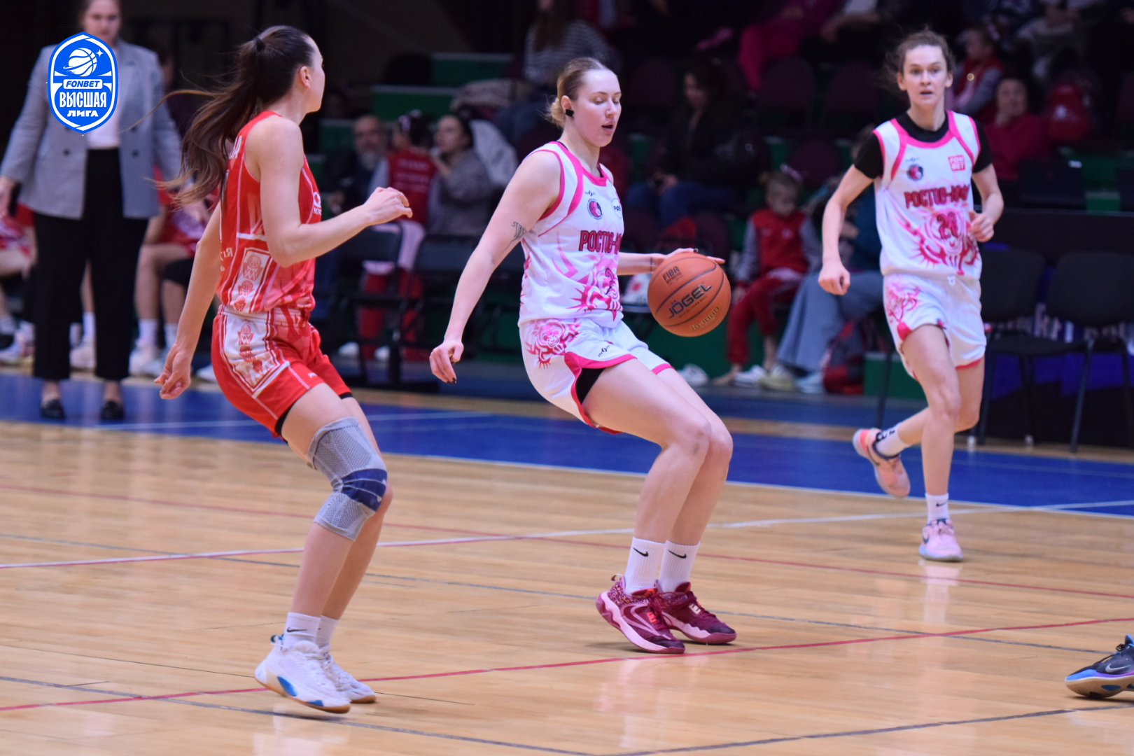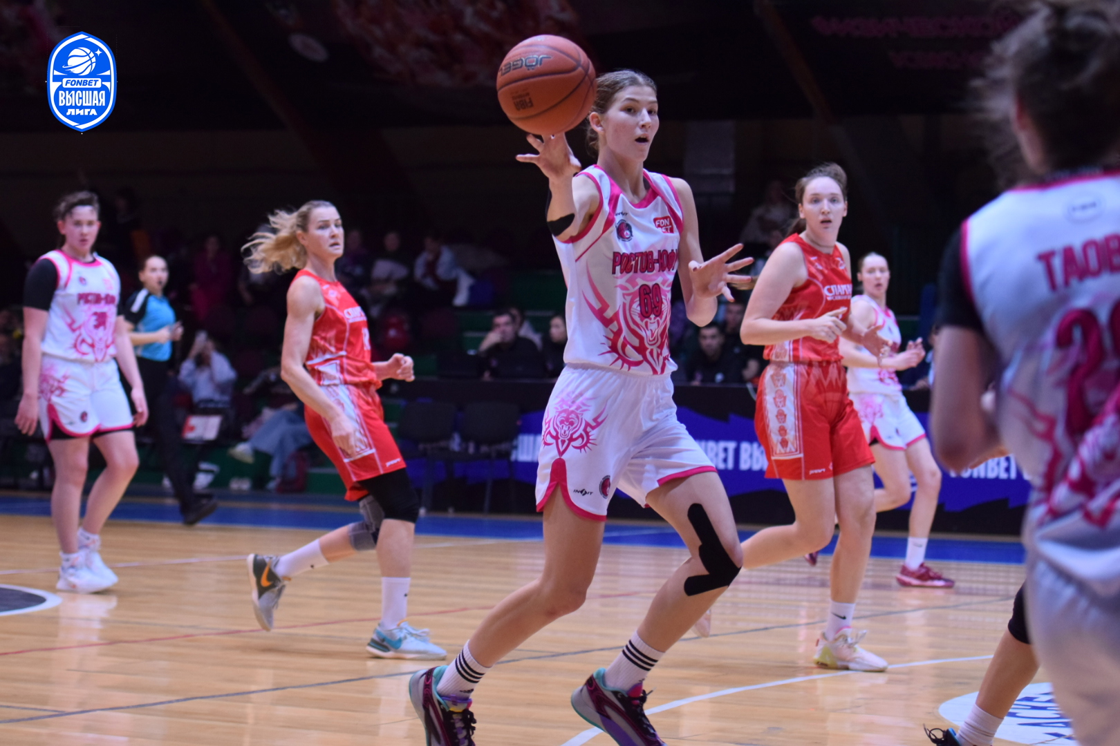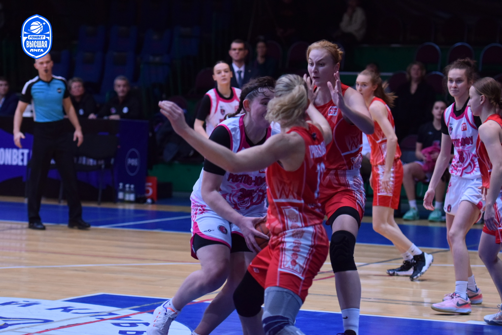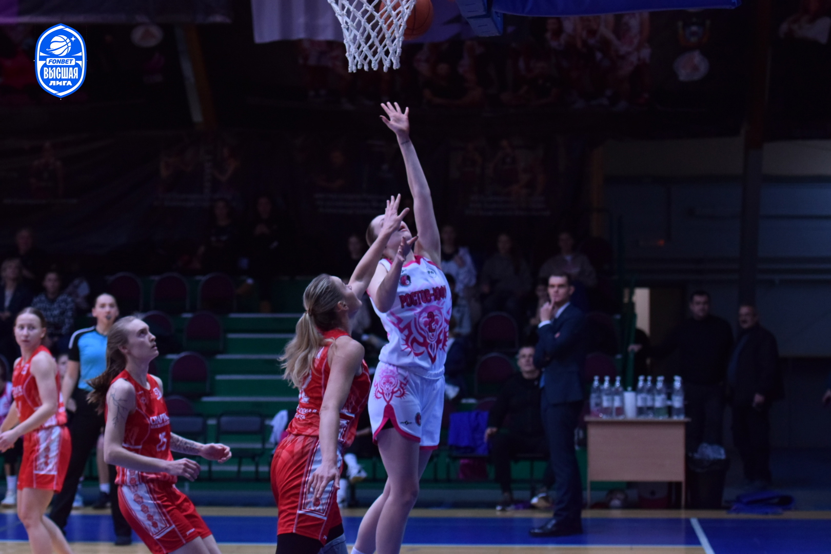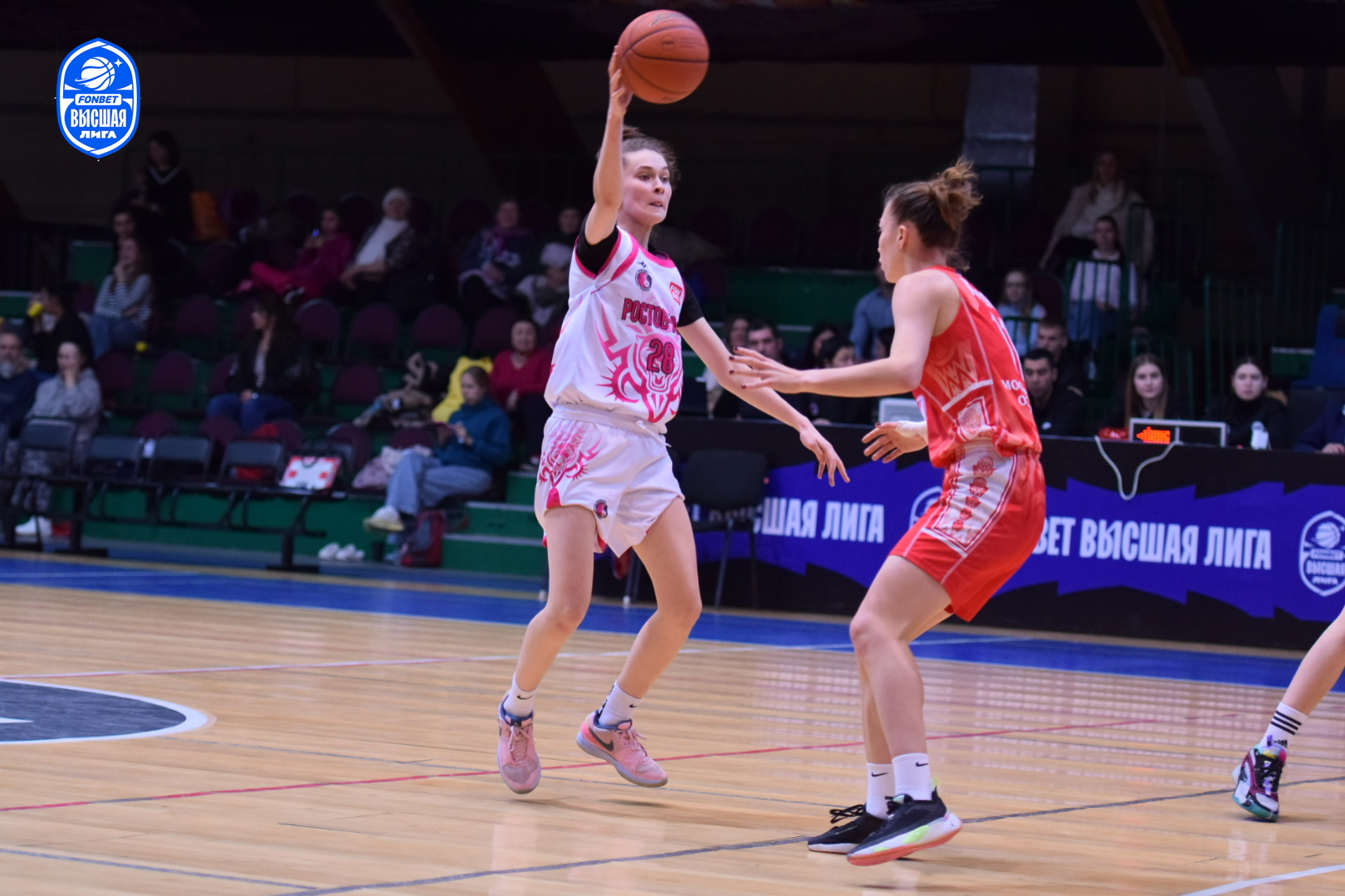 Настрой молодого ростовского коллектива дать бой фавориту был заметен с первых секунд поединка. Агрессивная и самоотверженная работа в обороне хозяек площадки раз за разом заставляла подмосковных баскетболисток ошибаться в атаке. Первый период завершился с минимальным преимуществом "Ростова-ЮФУ" - 14:13. Равная борьба происходила на площадке и в дальнейшем. Ростовчанки несколько раз пытались оторваться в счёте, но опытные спартаковки не позволяли им сделать этого. Оставив за собой вторую (22:21) и третью (17:16) четверти, "пантеры" выходили на решающий период, лидируя 53:50.