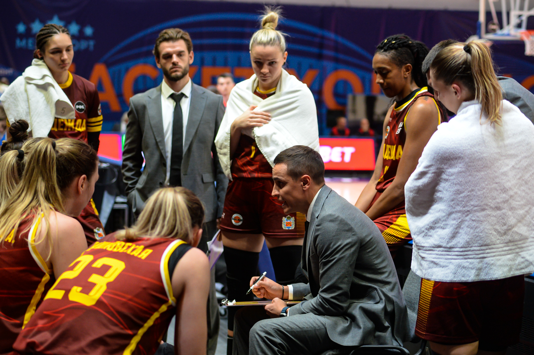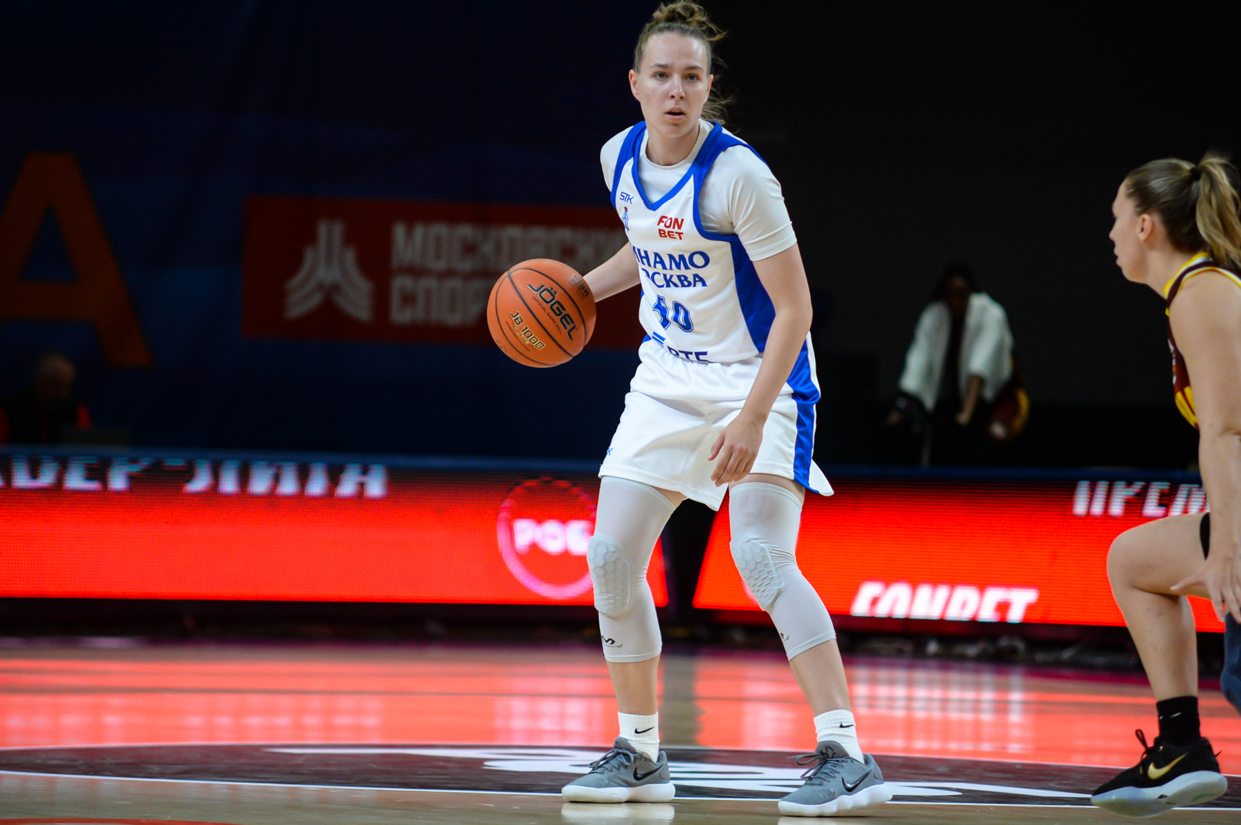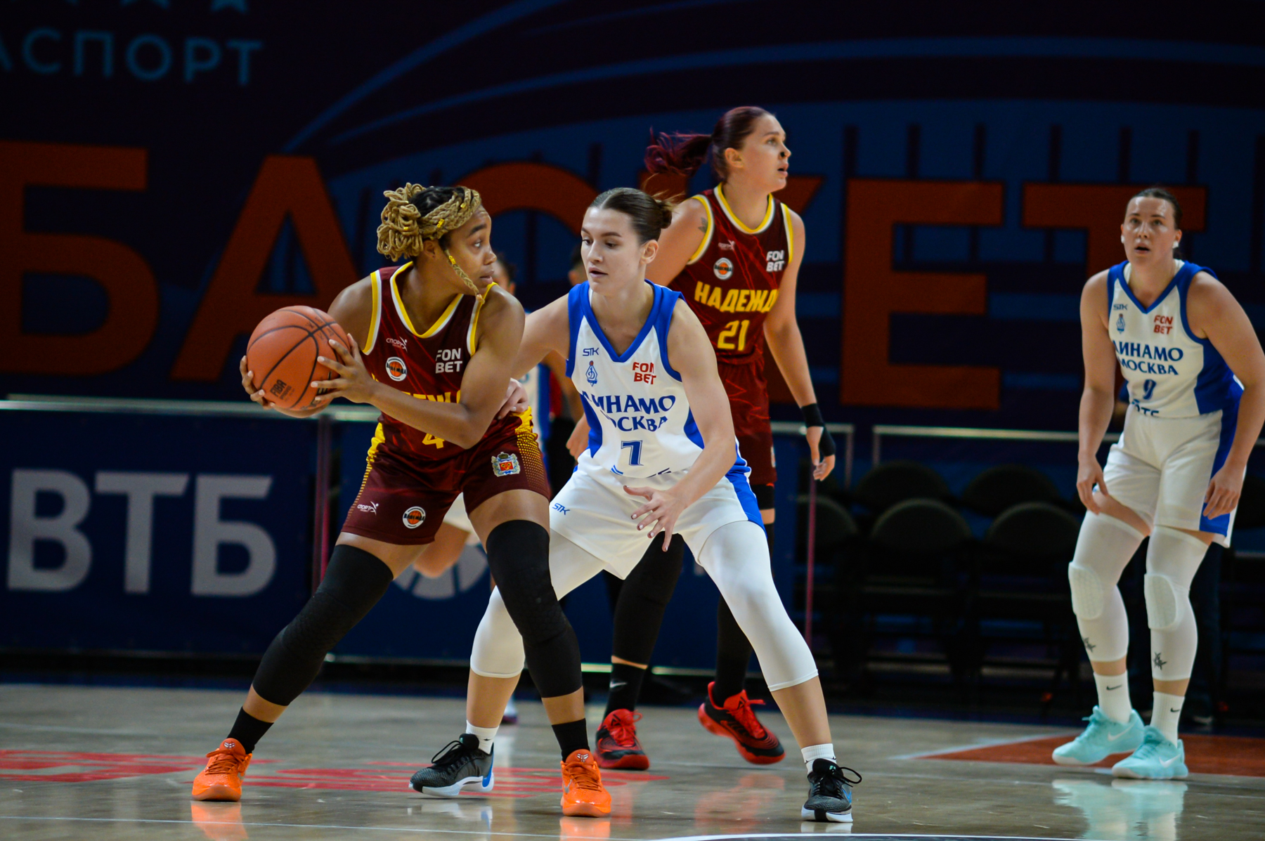 Вторую десятиминутку открыла Анастасия Зоткина, благодаря чему «Надежда» вышла вперед. Однако в следующих атаках гости испытывали неудачи. Пока желто-бордовые искали свою игру, подопечные Владимира Штама времени зря не теряли и совершили рывок 8:0. Точку в первой половине поставила Ксения Нестерова, увеличив перевес «Динамо» до «+9» (37:28).