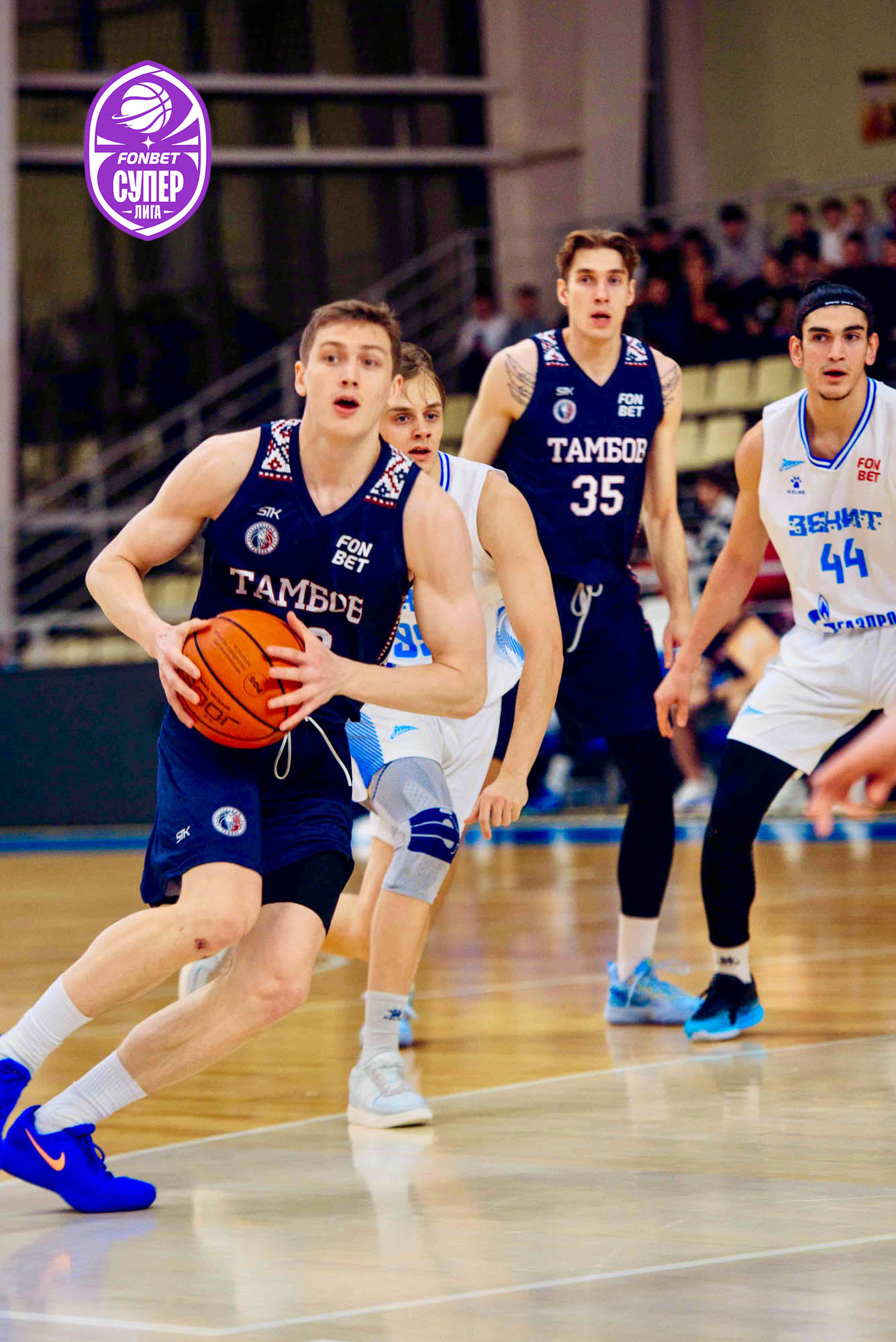 Вторая четверть, жесткая игра «Тамбова», попеременно тренерские штабы команд берут тайм-ауты, и явного лидера на паркете нет. До середины отрезка ведет «Тамбов», но несколько реализованных штрафных «Зенитом»-2 выводит гостей вперед. Счет перед третьей четвертью – 37:40.