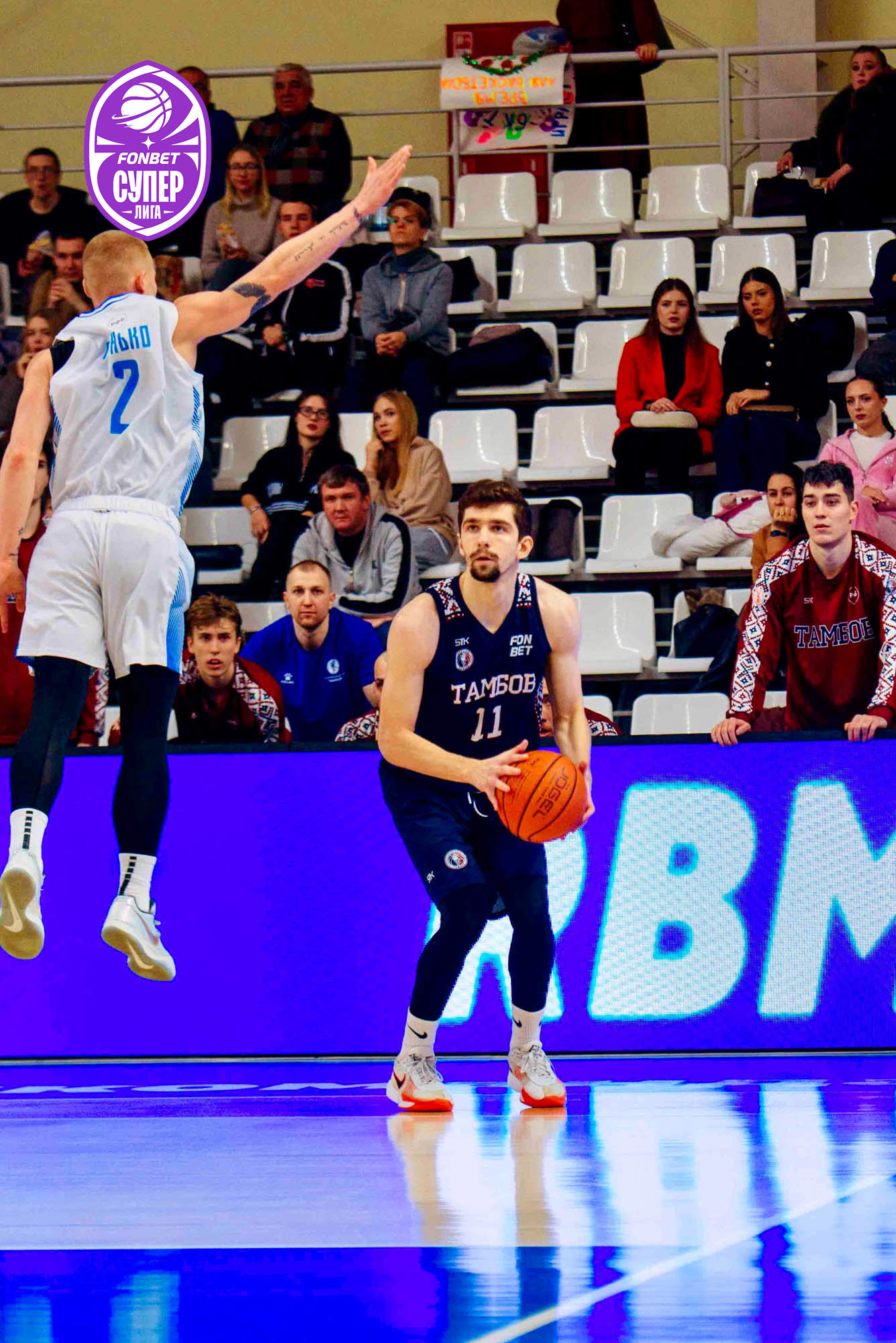 Невероятная атмосфера на тамбовском паркете: «Тамбов» пытается прервать серию поражений, а «Зенит-2» намерен увезти победу с предновогоднего матча. Разгорелась битва баскетбольных титанов, на кону в которой заветный трофей – очки чемпионата.