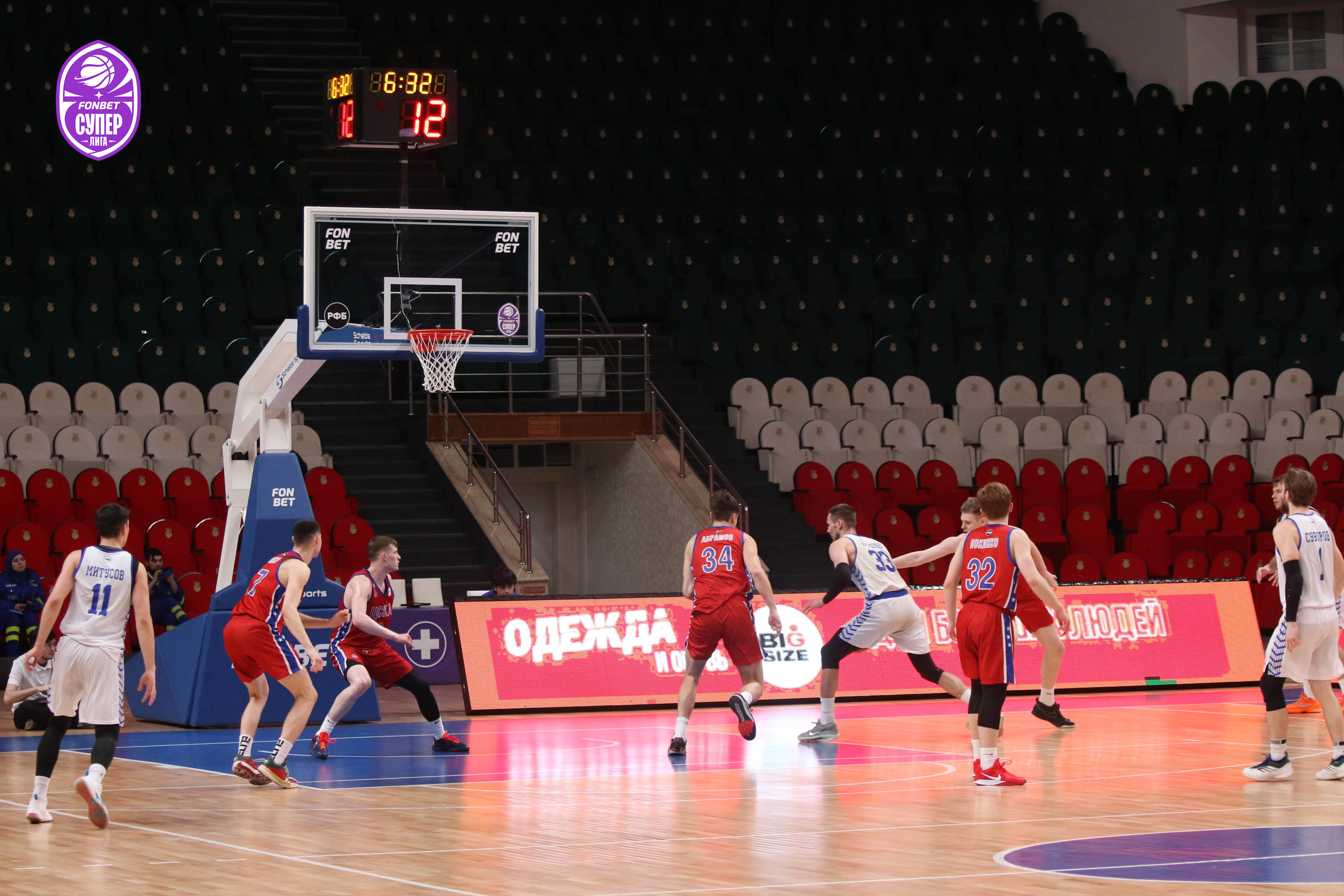 На старте второй четверти точный бросок ЦСКА-2 издалека на первых же секундах застал врасплох хозяев. В матче возникла невынужденная пауза, которая продлилась около 20 минут. Концовка первой половины запомнилась обилием фолов. Эмоциональным попаданием отметился Даниил Зиборов. Счёт к большому перерыву — 37:39.