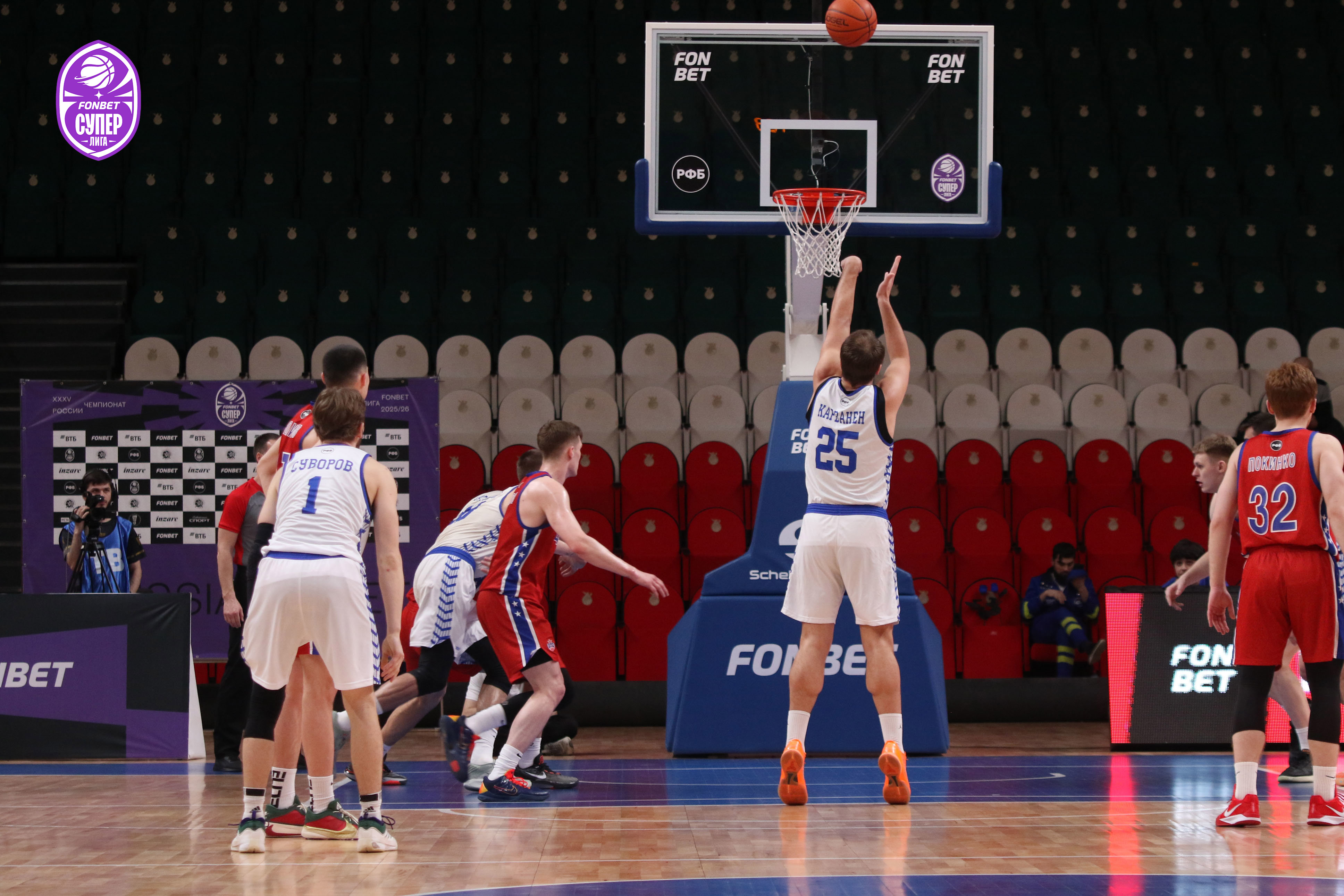 Первая четверть осталась за армейцами. Этому способствовали и точные броски, и подборы, и выверенные передачи. Первый тайм-аут Олег Киселёв взял при счёте 10:13. После этого команды обменялись двумя подряд «трешками». Стартовый отрезок выдался не самым результативным. Свой первый выход на паркет в составе «Динамо» совершил новобранец Глеб Суворов, набравший одно очко. На последней секунде четверти Сергей Митусов заработал штрафные броски — 16:18.