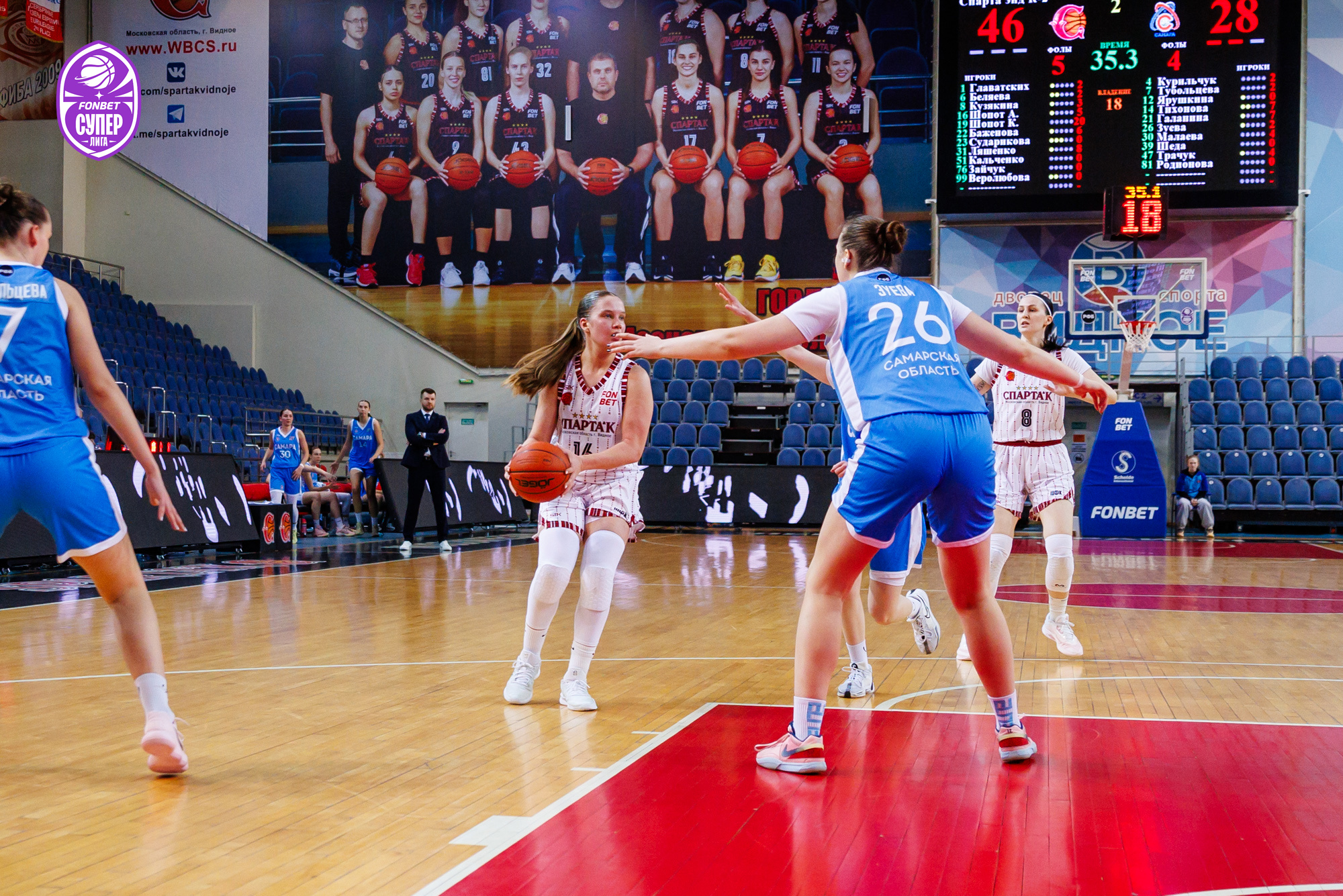 22 февраля «Спарта энд К-2» принимала на домашнем паркете дубль самарской женской команды. Два предыдущих очных противостояния с участием этих молодых коллективов завершились убедительным преимуществом Подмосковья (93:41, 101:58). Не менее уверенный успех подопечные Павла Рылло оформили и на этот раз. В первой же четверти лидеры хозяек раскрыли свой снайперский потенциал, и стартовый отрезок завершился со счетом 24:16.