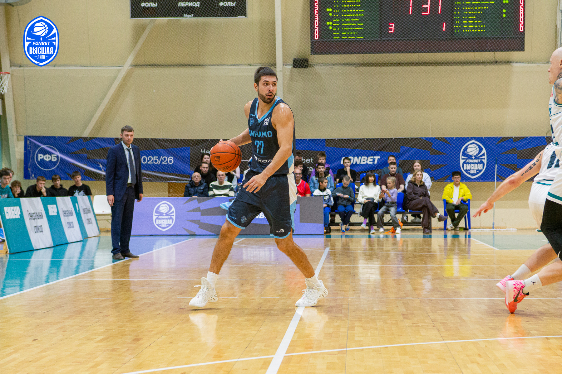 Во второй четверти динамовцы постепенно стали добавлять в агрессии, хотя тоболяки дважды совершали качественные рывки, ведя в счете – 24:19, 29:24. Но каждый раз гости находили в себе силы догонять соперника. В концовке десятиминутки с обеих сторон наконец-то заработали «дальнобойщики». А к большому перерыву команды вышли с идентичными показателями в ряде ключевых аспектов: по 19 подборов, ровно по 40% попаданий с игры. Лишь на табло имело место неравенство – 34:33 в пользу «Нефтехимика».